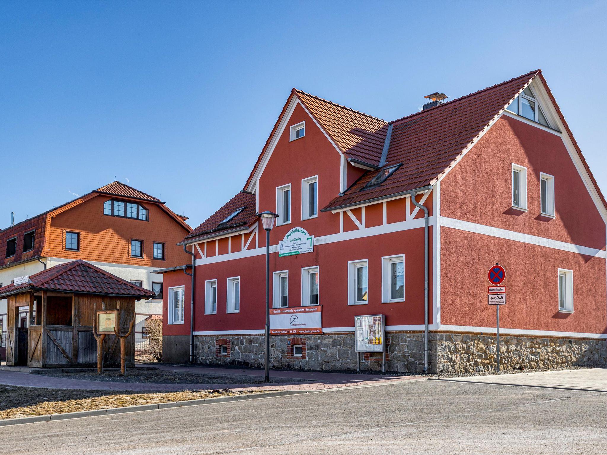 Ferienwohnungen Ziesing in Friedrichsbrunn, zentral gelegen. In direkter Nähe Restaurant, Bushaltestelle, Sparkasse, Minimarkt, Apotheke und Arzt.