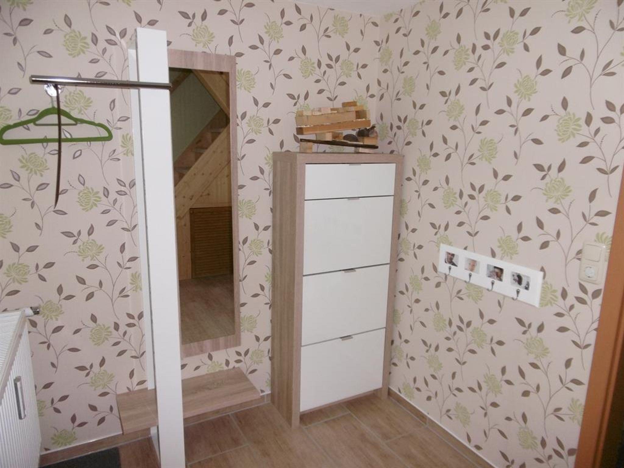 Parterre: Flur mit Garderobe, Bad mit DU/WC - Dusche mit ebenerdigem Einstieg. Treppe in das 1 Obergeschoß.