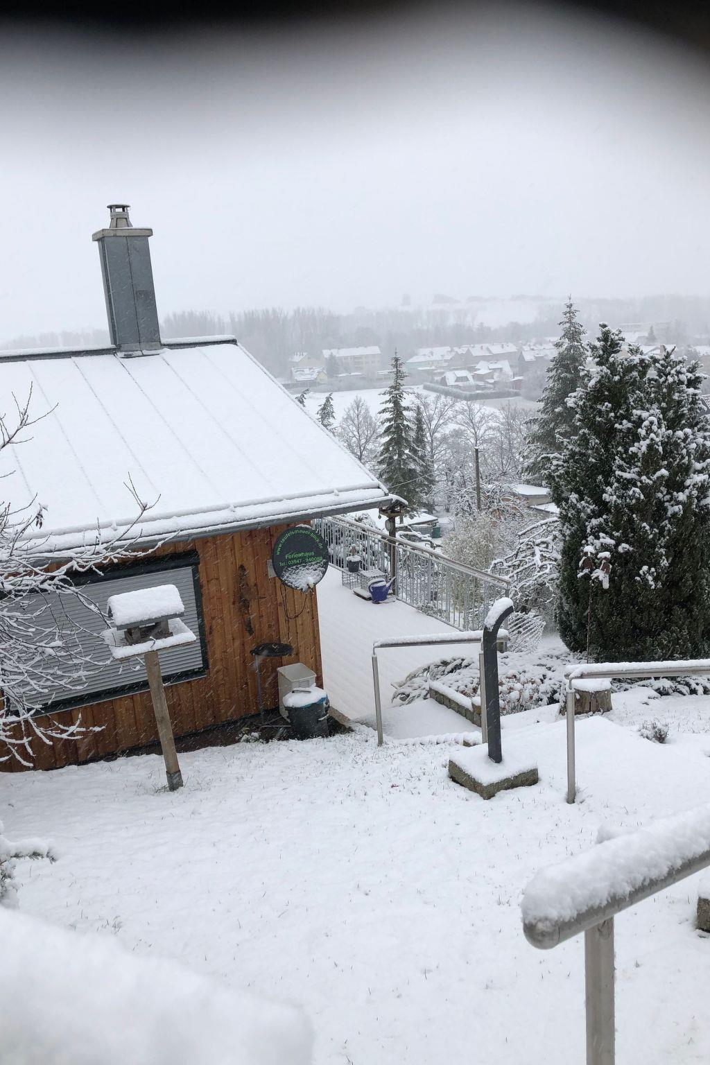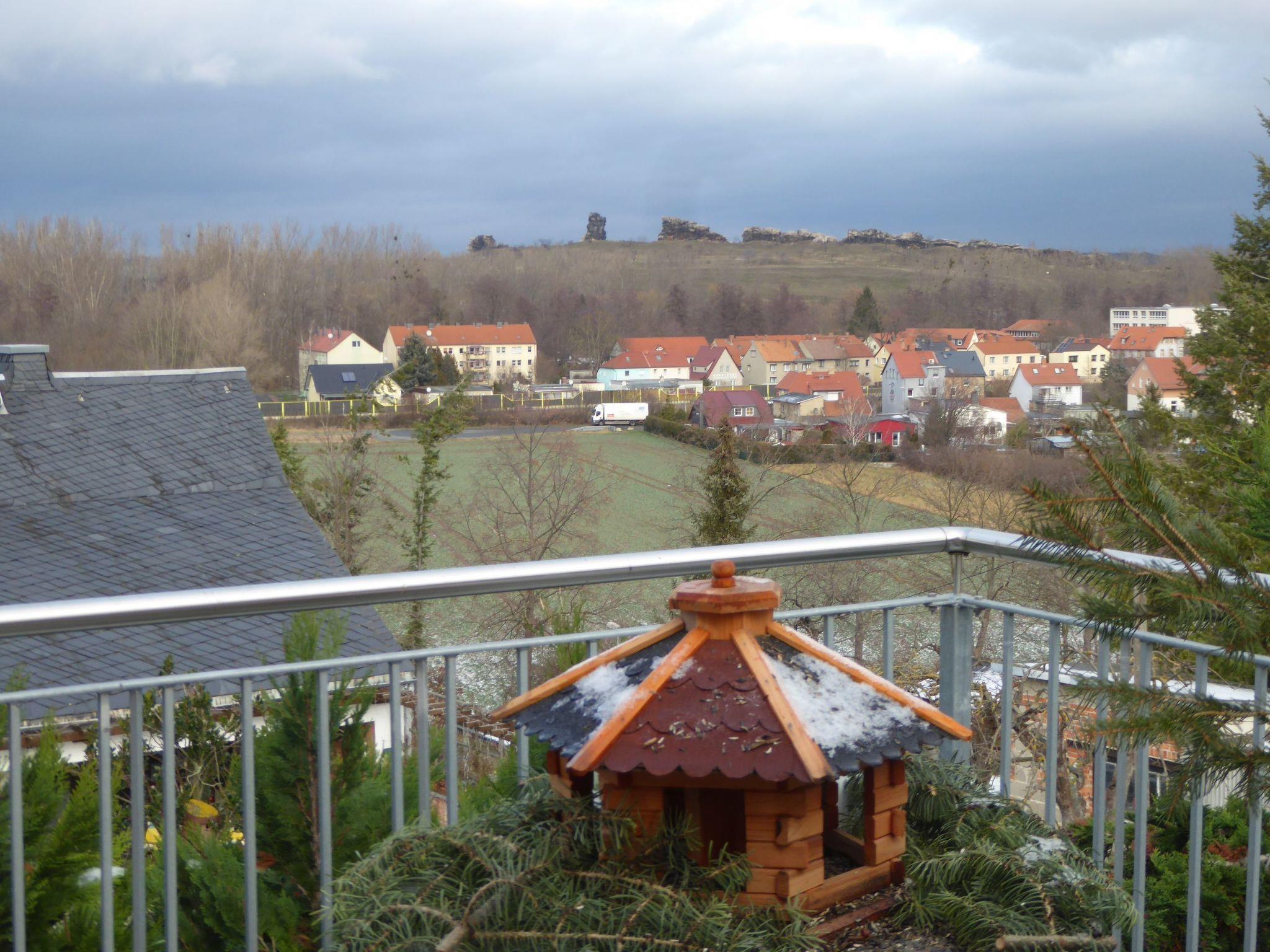 The holiday home is fully equipped in the kitchen. In addition to underfloor heating, there is also a wood-burning stove. TV, radio with CD and internet in the whole house and outside area. From the terrace you have a direct view of the Teufelsmauer (nature reserve) and to Quedlinburg (cultural heritage town). On the 2nd terrace there is a barbecue and a fire basket.