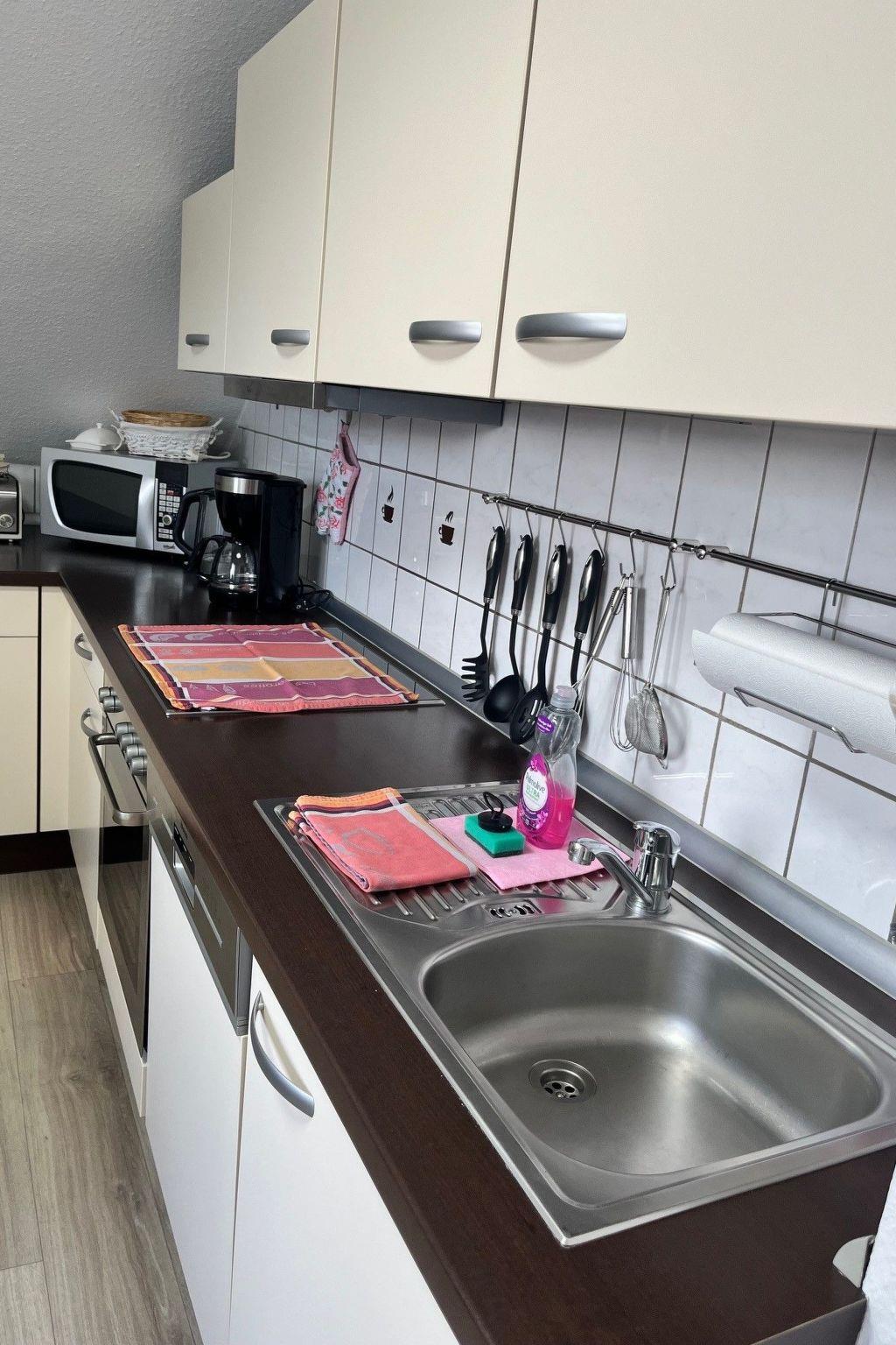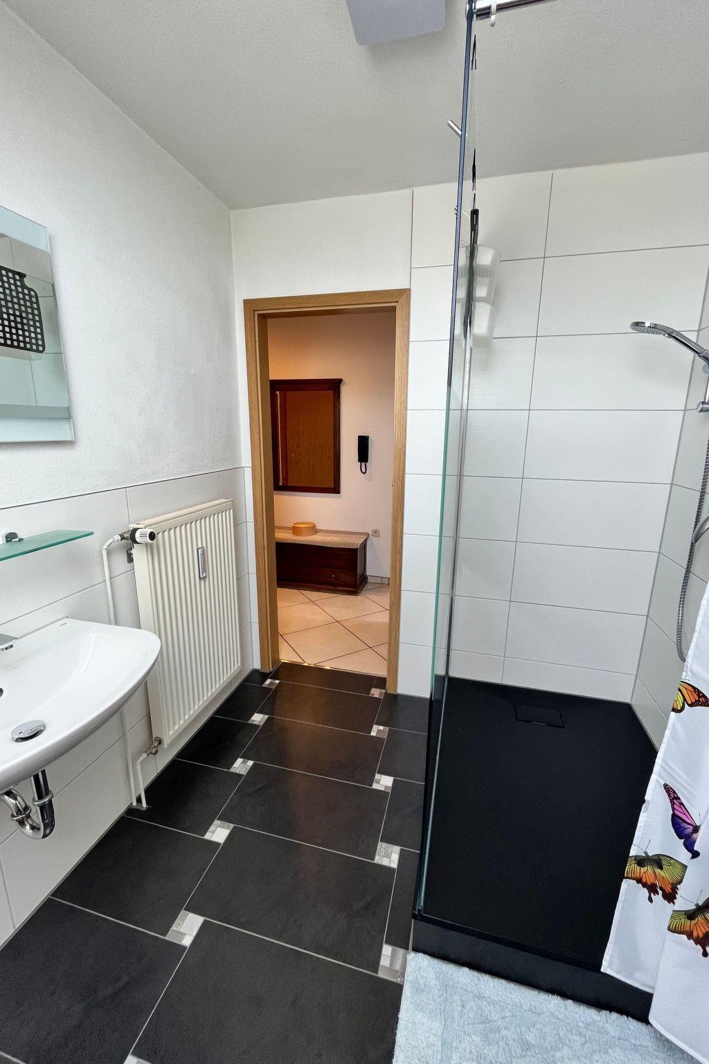 The flat extends over 86 m² and is located on the 2nd floor of a detached building. It is characterised by a well thought-out layout and comfortable furnishings. Relax in the spacious living room, which is equipped with a large TV and free Wi-Fi, or prepare your favourite dishes in the fully equipped kitchen with dishwasher, coffee machine and kettle. Two cosy bedrooms with large box-spring beds promise restful nights. There is also a modern bathroom with shower and hairdryer that leaves nothing to be desired.