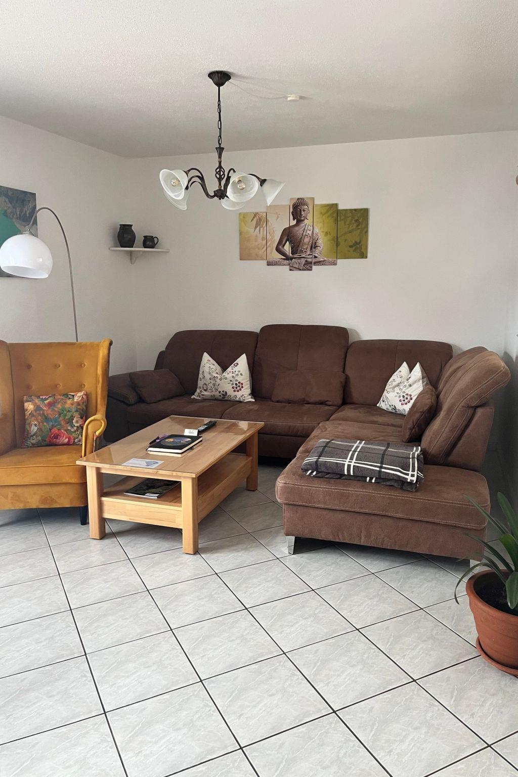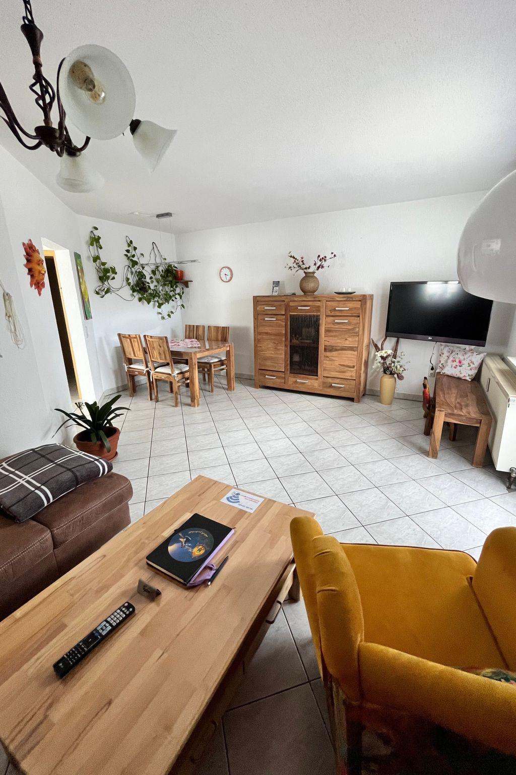 Inside, our flat will delight you with its extensive facilities. In addition to a warmly furnished living room with TV and direct access to the garden, there is a fully equipped kitchen with coffee machine and dishwasher as well as a spacious bathroom. Here you will find both a shower and a bathtub with shower attachment. For added convenience, there is a shared washing machine in the building, Wi-Fi throughout the flat and pets are welcome on request.