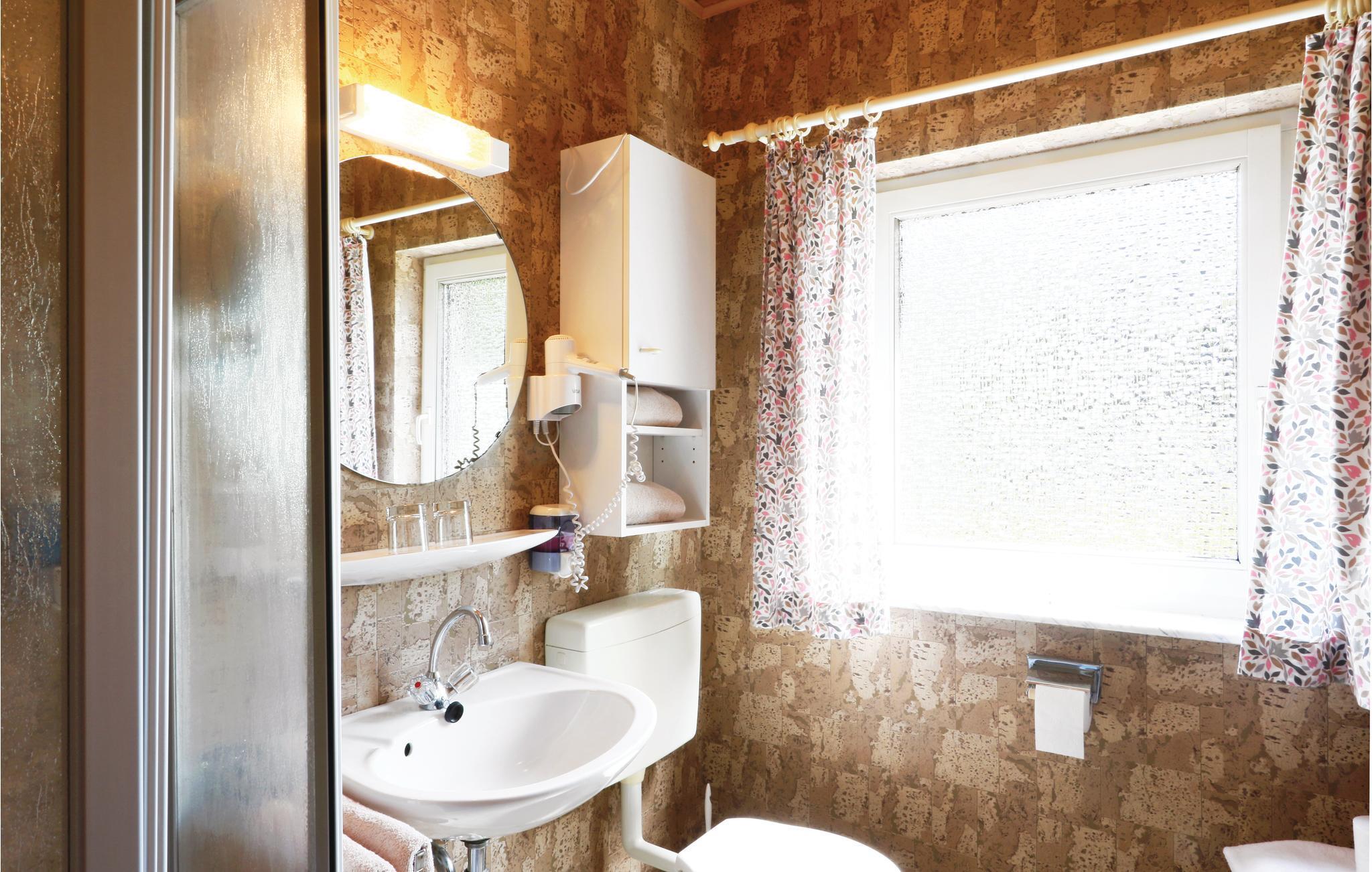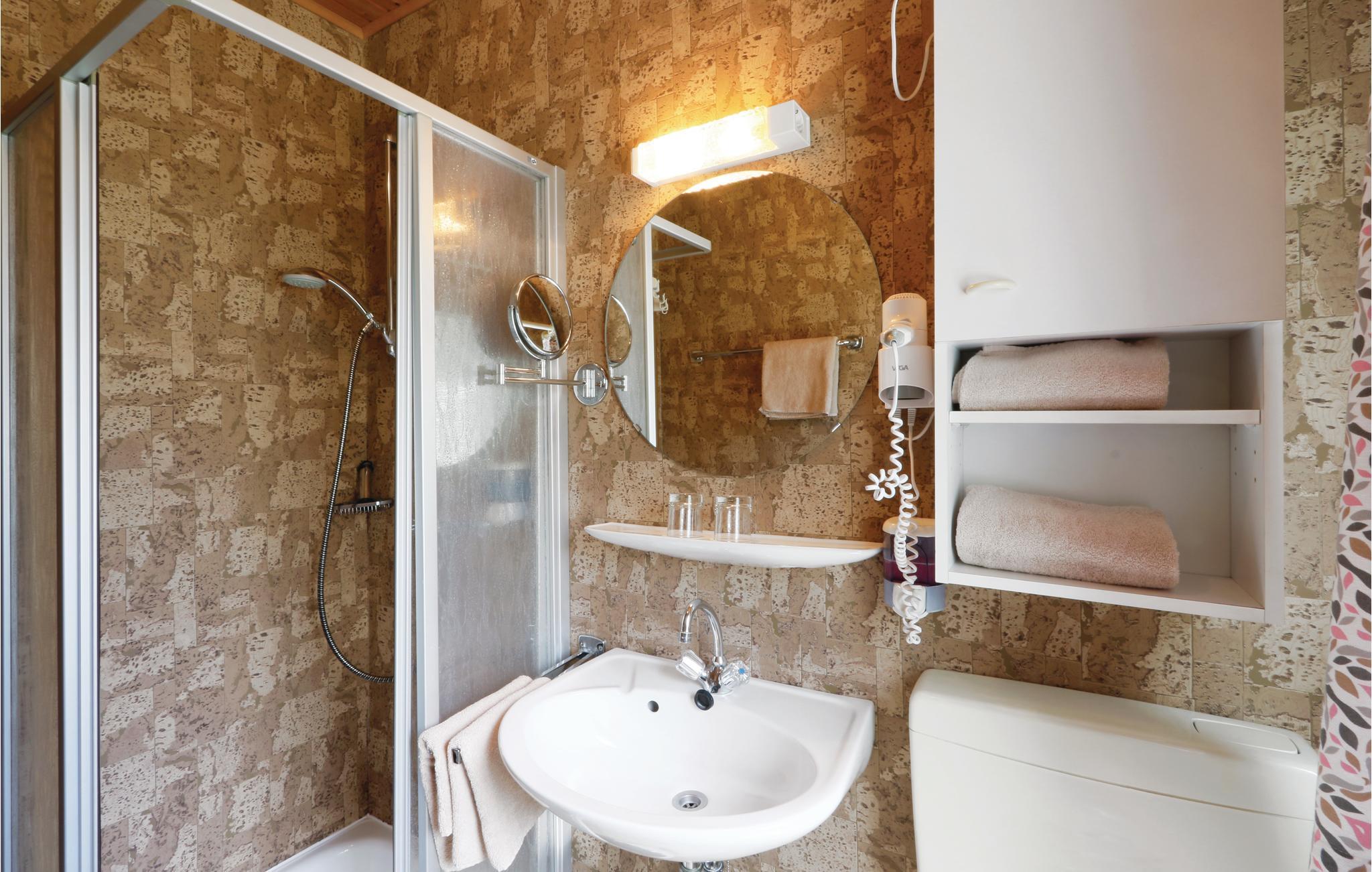 Das erste Schlafzimmer ist mit einem Doppelbett, das zweite Schlafzimmer mit zwei Einzelbetten ausgestattet. Während Sie auf der hauseigenen, offenen Terrasse entspannen, können Ihre Kinder ungestört auf der umgebenden Rasenfläche toben. Das Haus wird mit einer Infrarot-Heizung beheizt. Im Ferienpark befindet sich eine Tennishalle und ein Fitnessstudio, beides gegen Gebühr. Im anliegenden Hallenbad ist der Eintritt für unsere Gäste kostenlos.
