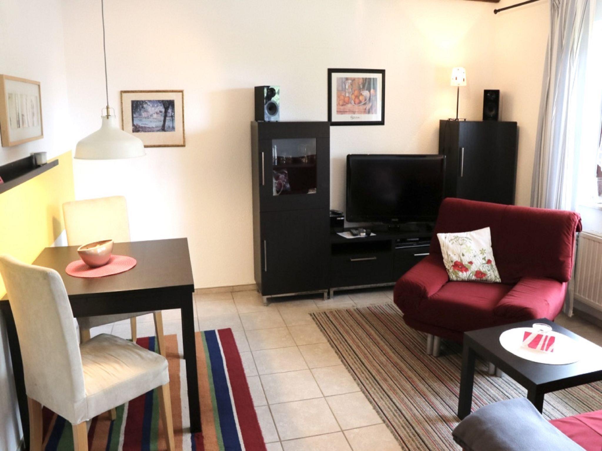 2-room apartment 35 m2, on the ground floor. Cosy furnishings: living/dining room 16 m2 with satellite TV (flat screen), CD-player, hi-fi system and DVD. 1 room 9 m2 with 1 double bed (200 cm, length 200 cm). Small kitchenette (2 hot plates, microwave, electric coffee machine). Shower/WC. Gas heating. Terrace 15 m2 partly roofed. Terrace furniture. Facilities: Internet (WiFi, free). Parking at 10 m. Please note: non-smokers only. Smoke alarm. Terrace for shared use with DE5509.200.4. Communal garden (500 m2) with lawn (200 m2). Barbecue area can be used communally.