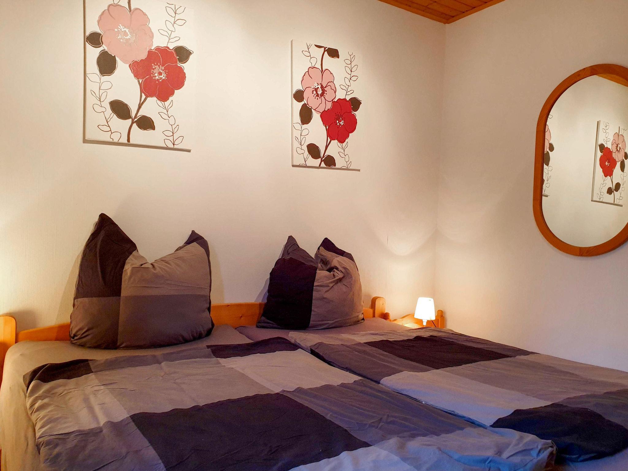 "Haus Tausendschön", 3-room house 70 m2, on the ground floor. Comfortable and cosy furnishings: living/dining room 25 m2 with satellite TV (flat screen), CD-player and DVD. 2 rooms 9 m2, each room with 2 beds (90 cm, length 200 cm). Open kitchen 6 m2 (4 hot plates, oven, dishwasher, microwave, freezer, electric coffee machine). Shower/WC. Gas heating. Small terrace 6 m2 partly roofed, garden 300 m2, lawn 250 m2. Terrace furniture, barbecue, box-room. Facilities: children's high chair, hair dryer. Internet (WiFi, free). Parking. Please note: non-smoking house. Maximum 1 pet/ dog allowed. Smoke alarm.