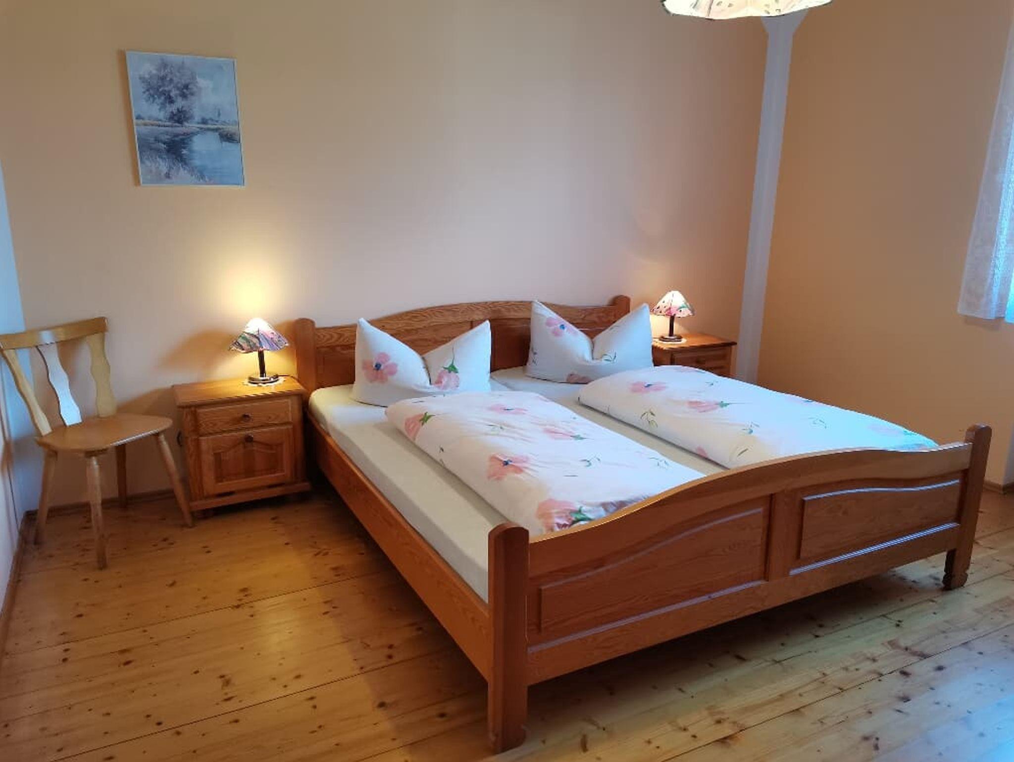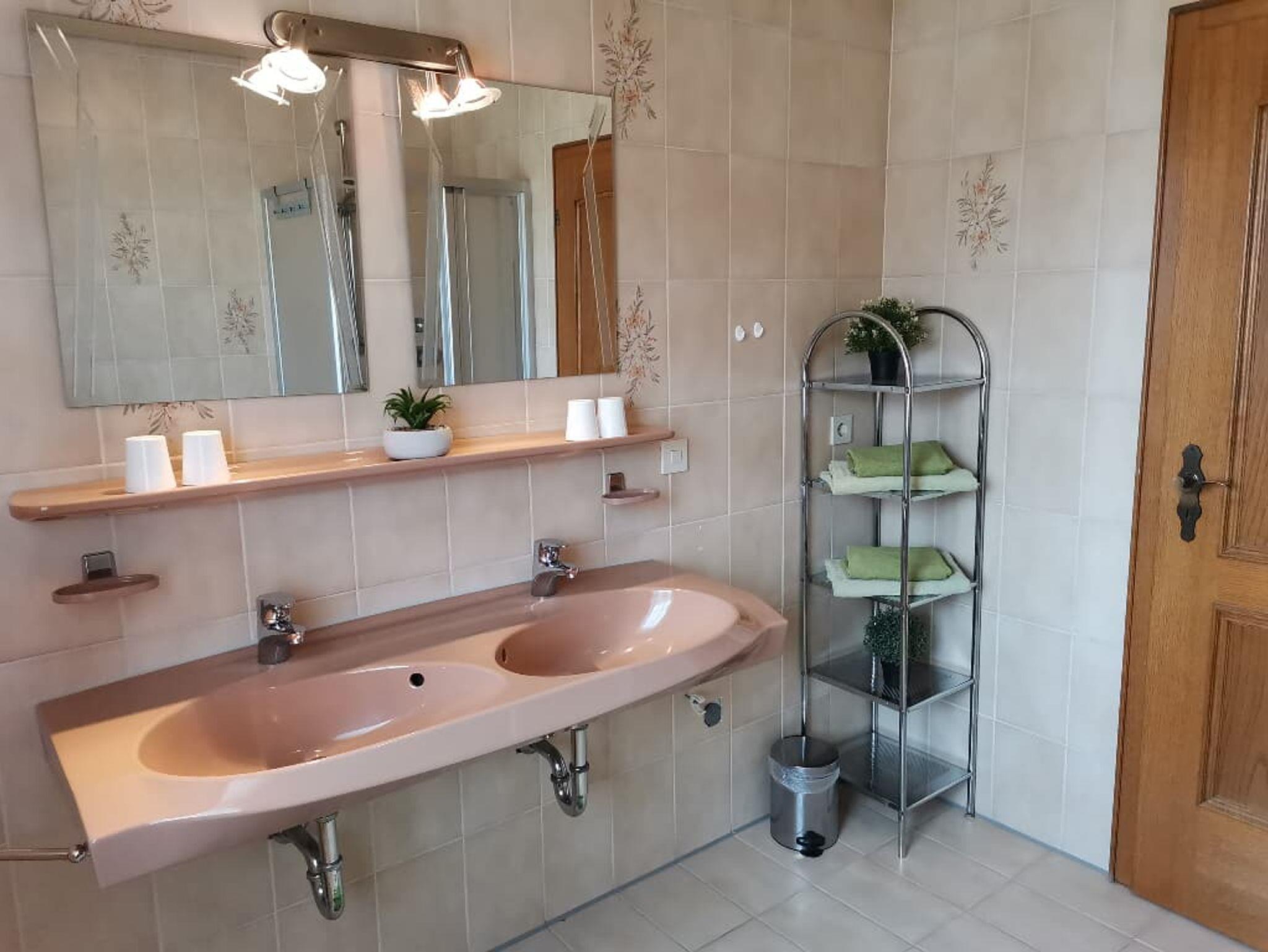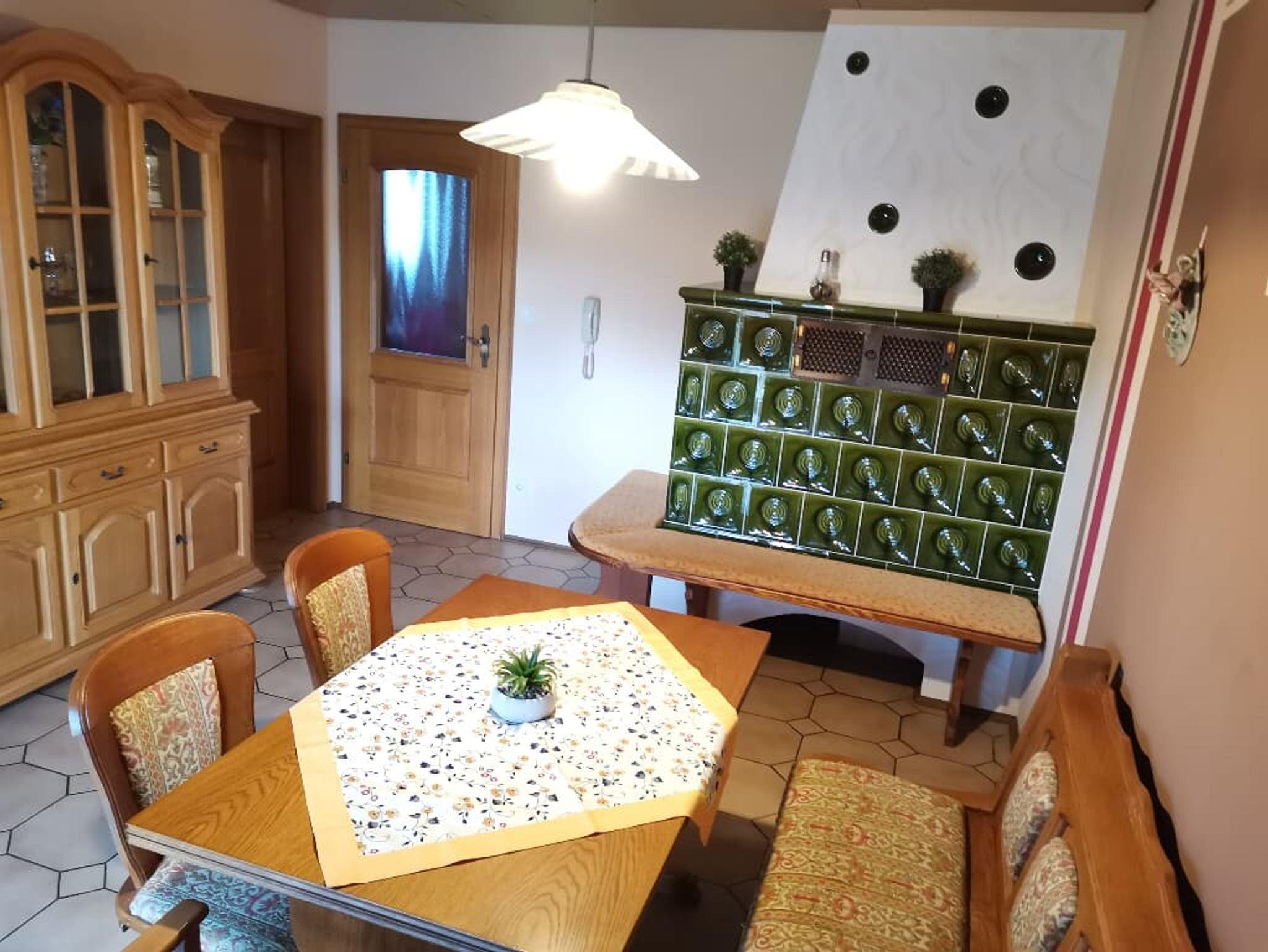 Unsere Ferienwohnung im Erdgeschoss mit 100 m² Wohnfläche bietet Platz für bis zu 6 Personen. Das gemütliche Wohnzimmer mit Flachbild-TV lädt zum Verweilen ein und bietet Zugang zum Balkon. Die komplett ausgestattete Küche mit Kühlschrank, Gefrierfach, Herd, Backofen, Toaster und Kaffeemaschine lässt keine Wünsche offen. Im gemütlichen Esszimmer mit Kachelofen und Eckbank können Sie den Tag in gesellschaftlicher Runde ausklingen lassen. Die Wohnung verfügt über 3 geräumige Schlafzimmer mit zwei Doppelbetten, einem Einzelbett und zusätzlicher Schlafcouch. Das Badezimmer ist ausgestattet mit Dusche, Badewanne und großem Doppelwaschbecken. Vor allem im Sommer können Sie entspannte Grillabende in unserem großen Garten verbringen. Ebenso stehen Spielmöglichkeiten für Kinder bereit, sowie eine Tischtennisplatte. Das WLAN und den Parkplatz vor dem Haus können Sie kostenfrei nutzen. Haustiere sind ebenso herzlich willkommen.