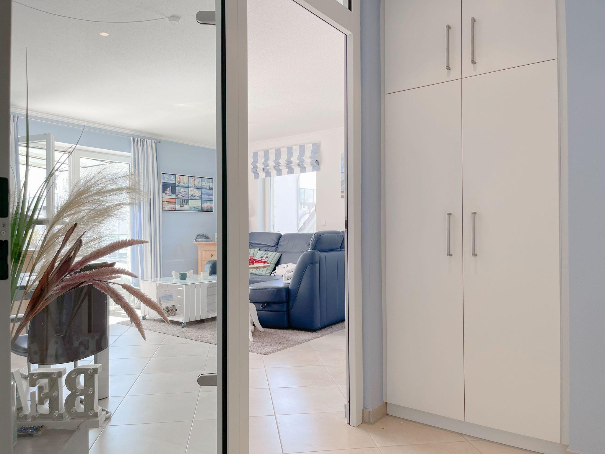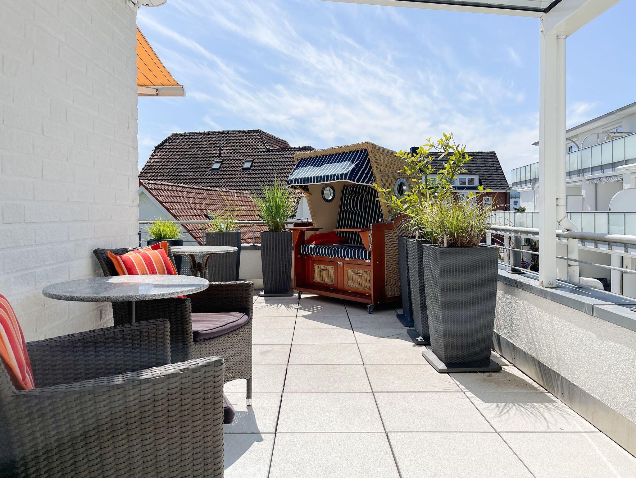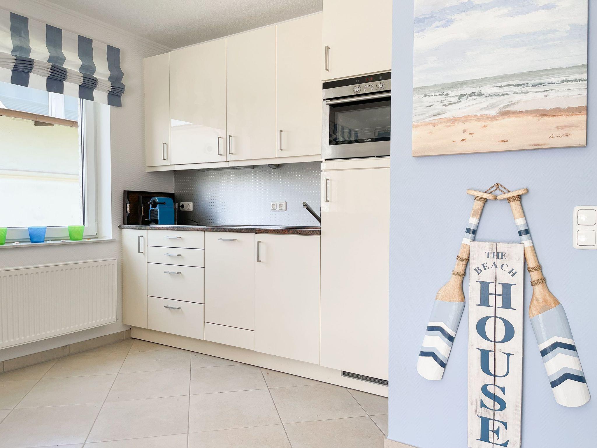 Die Oase 16 befindet sich in der 1. Etage, die bequem mit dem Aufzug zu erreichen ist und ausreichend Raum für 4 Personen bietet, um einen erholsamen Ostseeurlaub zu verleben. Die gemütliche, maritime Einrichtung[nbsp] schafft ein herrliches Ambiente zum wohlfühlen und viel Fensterfläche sorgt für lichtdurchflutete Räumlichkeiten. Alle Fenster der Wohnung sind mit elektrischen Außenjalousien versehen. Das absolute Highlight ist die riesige Dachterrasse in Südwestausrichtung für viele gemeinsame Sonnenstunden, die mit einer Essgruppe, Strandkorb und elektrischen Markisen ausgestattet ist. Der Außenbereich ist zum Teil überdacht und sowohl vom Wohnbereich als auch von einem Schlafzimmer zu betreten. Es stehen zwei separate Schlafzimmer zur Verfügung, die mit Doppelbetten (180x200 und 160x200) und Smart TV ausgestattet sind, sowie ein geräumiges Duschbad mit Fußbodenheizung und Handtuchtrockner. Mittelpunkt der Wohnung bildet der maritime Wohnbereich mit integriertem Essbereich und offener Küchenzeile in bester Ausstattung. Der großzügige Eingangsbereich ist hell gefliest und mit einem Einbauschrank ausgestattet und mit Glastüren vom Wohnbereich getrennt. Im an das Hauptschlafzimmer angrenzenden Wirtschaftsraum befinden sich Waschmaschine und Trockner sowie ein separater Gefrierschrank.