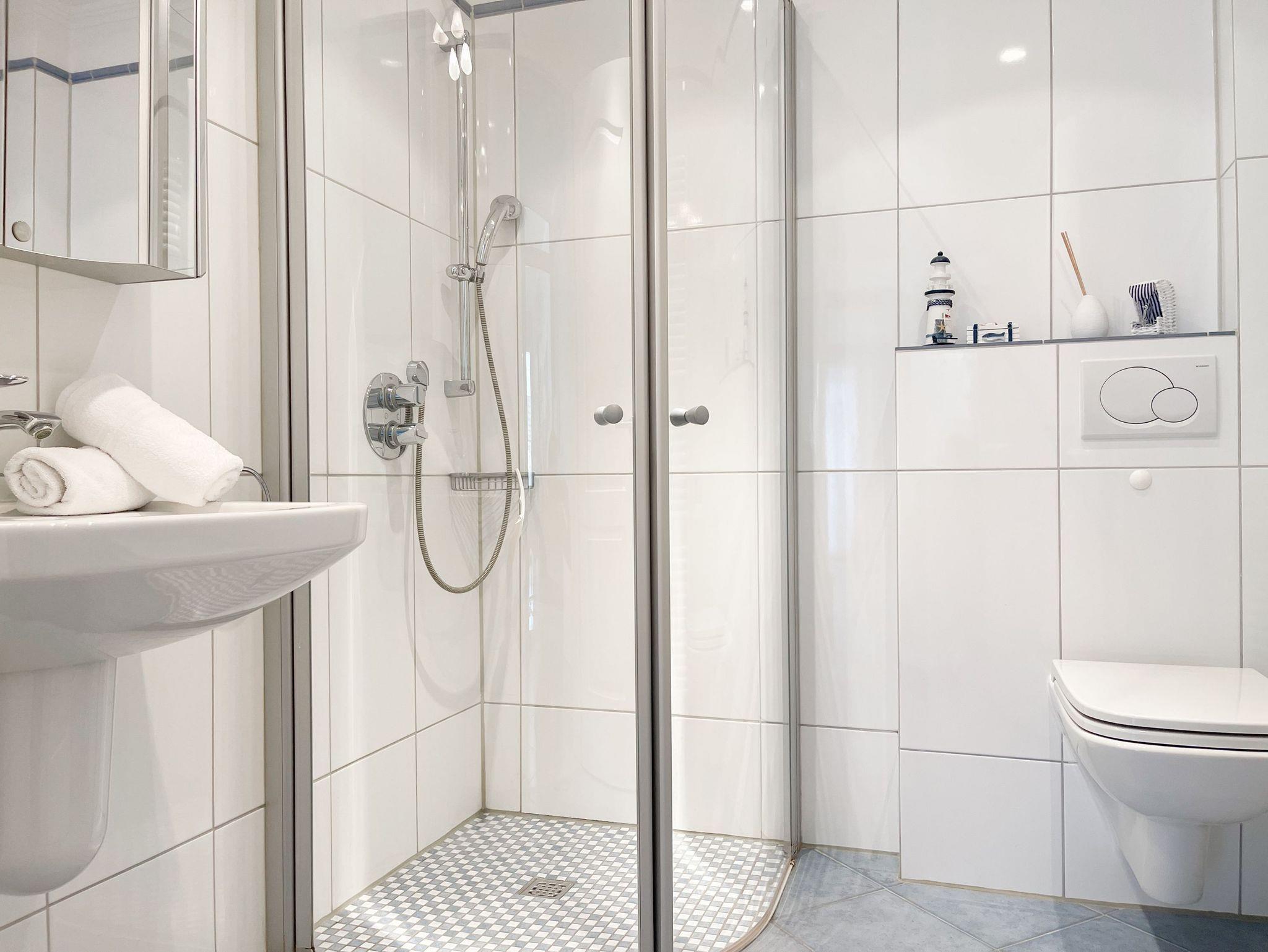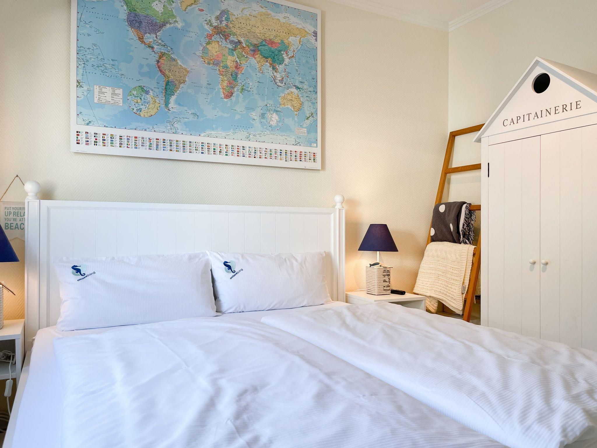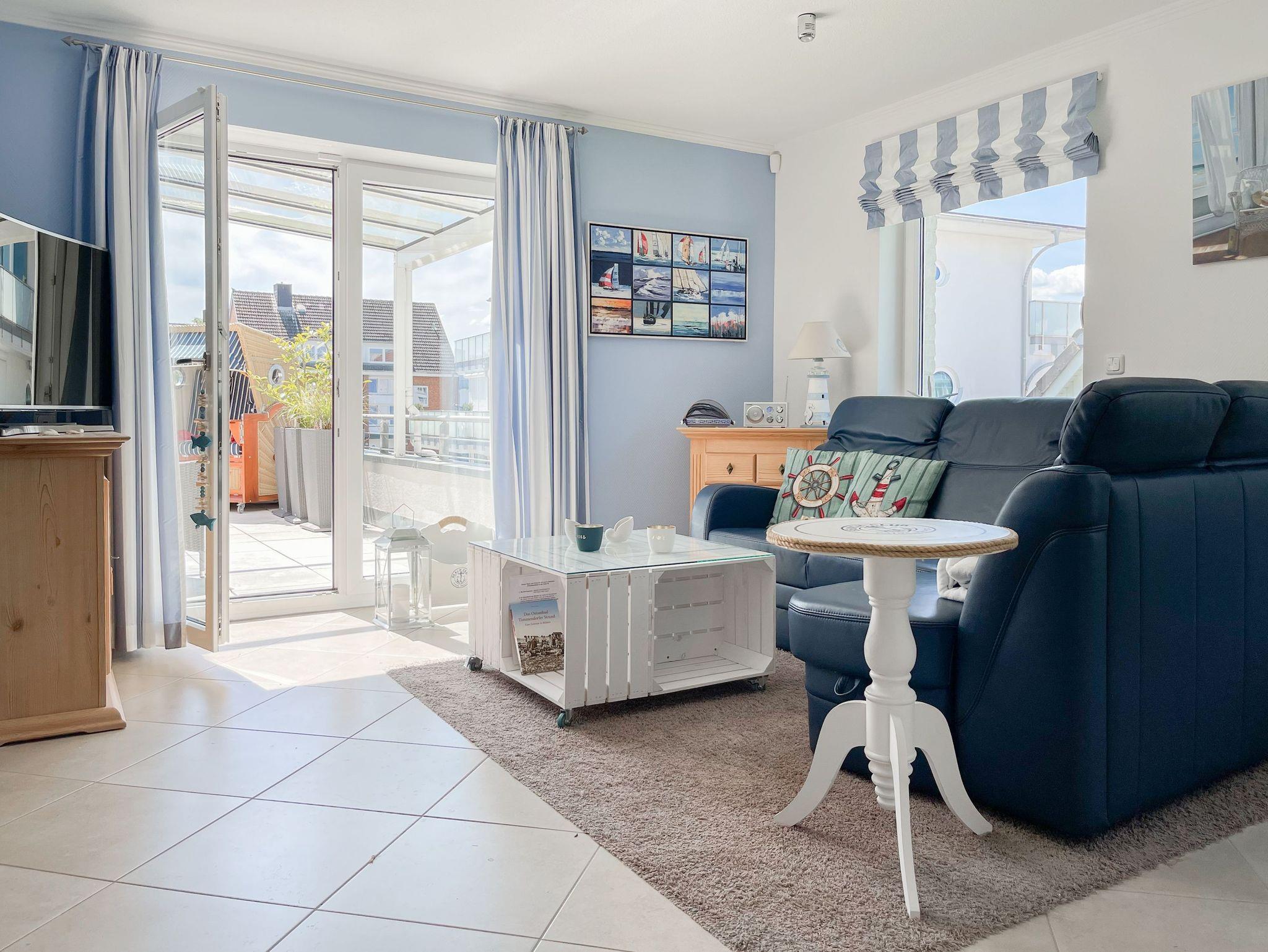Die Oase 16 befindet sich in der 1. Etage, die bequem mit dem Aufzug zu erreichen ist und ausreichend Raum für 4 Personen bietet, um einen erholsamen Ostseeurlaub zu verleben. Die gemütliche, maritime Einrichtung[nbsp] schafft ein herrliches Ambiente zum wohlfühlen und viel Fensterfläche sorgt für lichtdurchflutete Räumlichkeiten. Alle Fenster der Wohnung sind mit elektrischen Außenjalousien versehen. Das absolute Highlight ist die riesige Dachterrasse in Südwestausrichtung für viele gemeinsame Sonnenstunden, die mit einer Essgruppe, Strandkorb und elektrischen Markisen ausgestattet ist. Der Außenbereich ist zum Teil überdacht und sowohl vom Wohnbereich als auch von einem Schlafzimmer zu betreten. Es stehen zwei separate Schlafzimmer zur Verfügung, die mit Doppelbetten (180x200 und 160x200) und Smart TV ausgestattet sind, sowie ein geräumiges Duschbad mit Fußbodenheizung und Handtuchtrockner. Mittelpunkt der Wohnung bildet der maritime Wohnbereich mit integriertem Essbereich und offener Küchenzeile in bester Ausstattung. Der großzügige Eingangsbereich ist hell gefliest und mit einem Einbauschrank ausgestattet und mit Glastüren vom Wohnbereich getrennt. Im an das Hauptschlafzimmer angrenzenden Wirtschaftsraum befinden sich Waschmaschine und Trockner sowie ein separater Gefrierschrank.