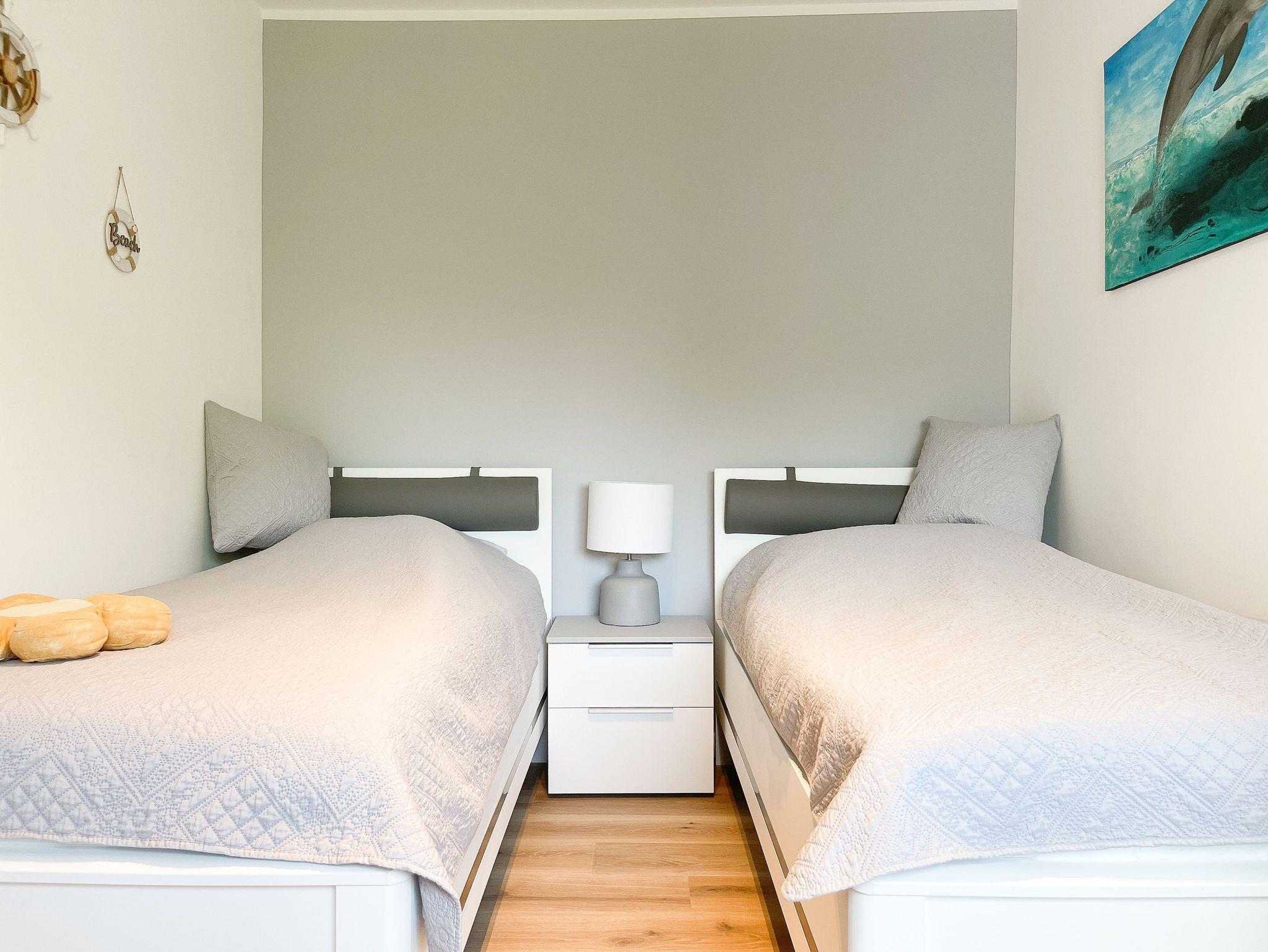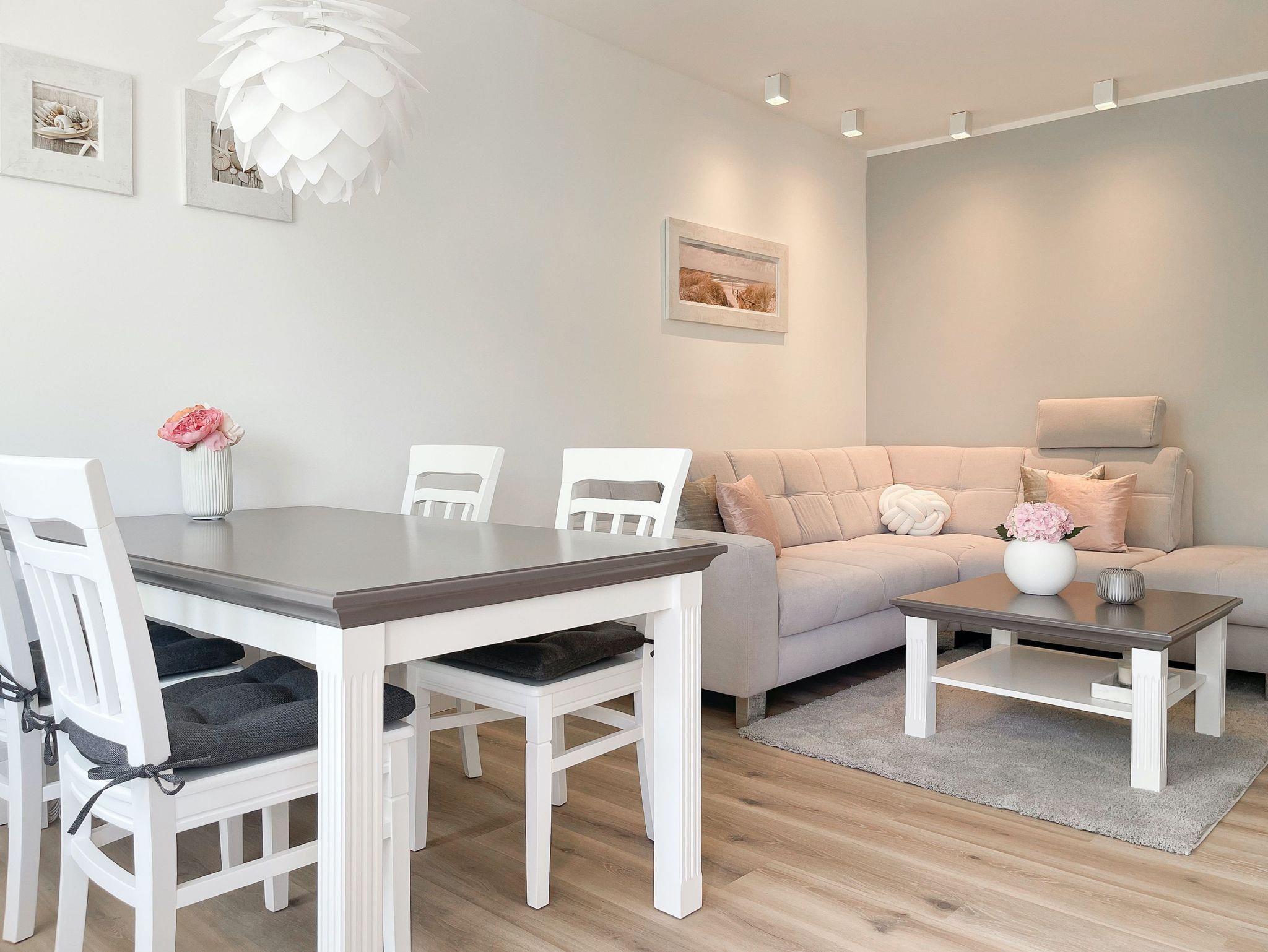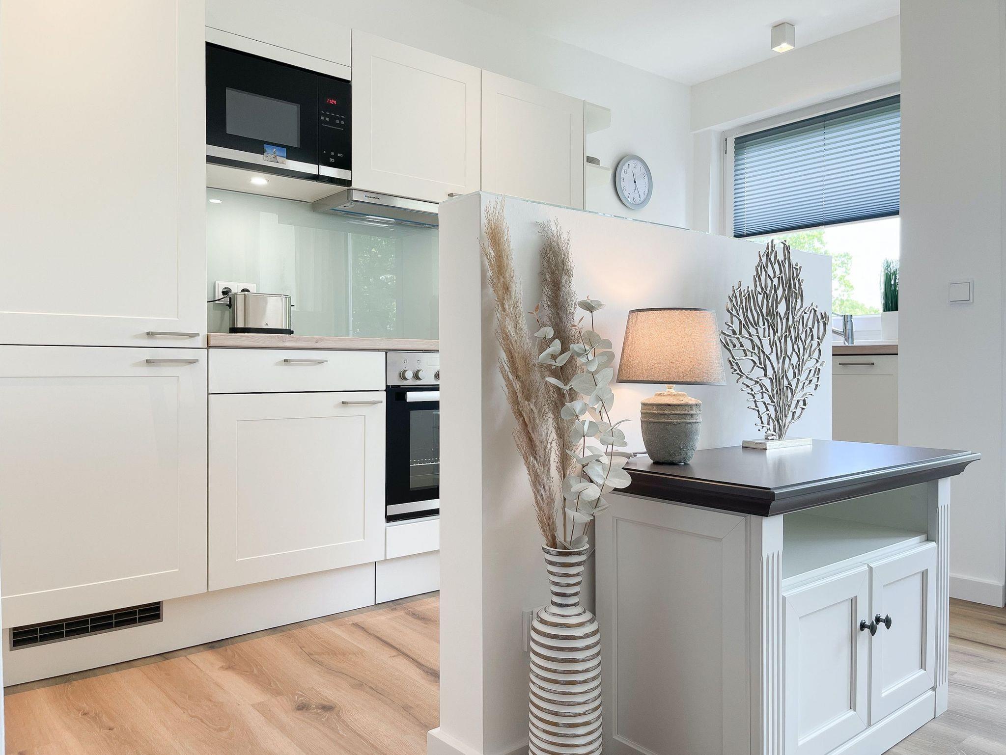 Die Strandlounge bietet alles was das Herz begehrt, um einen entspannten Urlaub zu verleben. Es erwartet Sie eine wunderschöne Ferienwohnung, hochwertig eingerichtet mit Liebe zum Detail und einer herrlichen Wohnatmosphäre. Es gibt einen schönen Balkon zur Meerseite mit einer gemütlichen Lounge und je nach Jahreszeit kann man sogar die Ostsee blitzen sehen. Der großzügige Wohnbereich verfügt über eine schöne Sofalandschaft, TV und einen Essbereich mit reichlich Platz für 4 Personen. Die bestens ausgestattete Einbauküche wird jeden Hobby Koch erfreuen und die optische Trennung vom Wohnbereich durch eine kleine Wandscheibe, ist sehr gelungen. Es gibt 2 separate Schlafzimmer mit ausreichend Staufläche für die Urlaubsgarderobe und Außenjalousien für erholsamen Schlaf. Ein Schlafzimmer verfügt über eine Doppelbett, das andere über 2 Einzelbetten und einen zusätzlichen TV. Das neue Bad ist klein aber sehr fein mit einer herrlichen Walk In Dusche, Handtuchtrockner und Föhn.