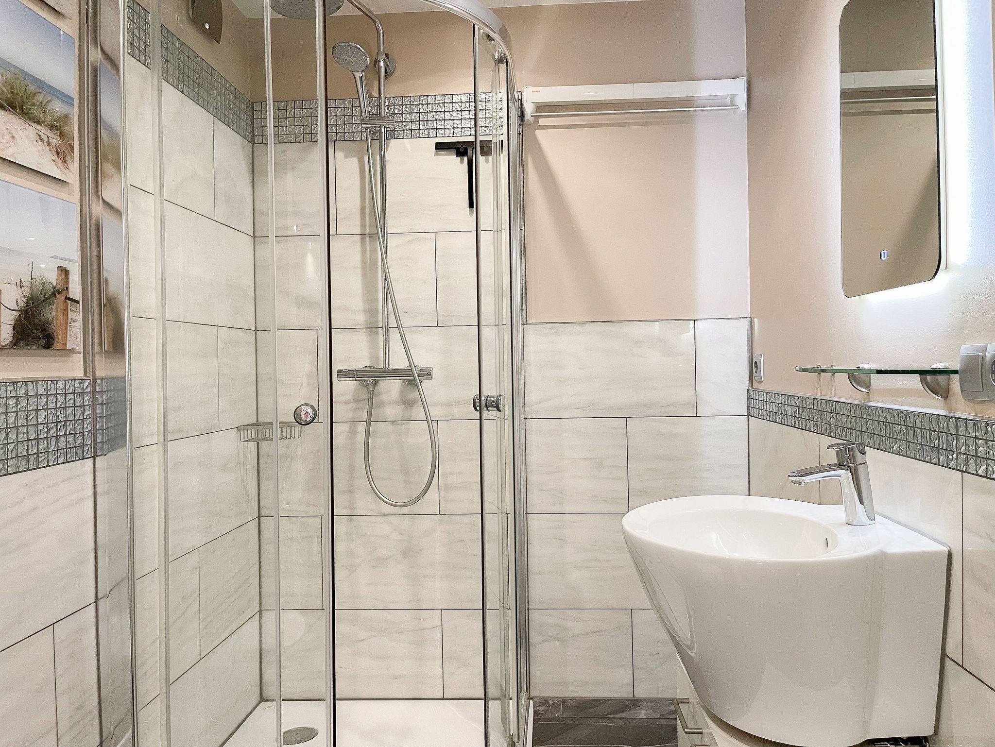 Wellness zum Ausspannen bieten das Schwimmbad mit schönem Blick auf die Ostsee und die Sauna, die sich in der obersten Etage des Hauses befinden und zu den Öffnungszeiten kostenlos genutzt werden können. Bitte beachten Sie, dass die Sauna nur von Freitag bis Sonntag und an den Feiertagen betriebsbereit ist. Das Schwimmbad ist im November aufgrund von Wartungsarbeiten geschlossen sind.