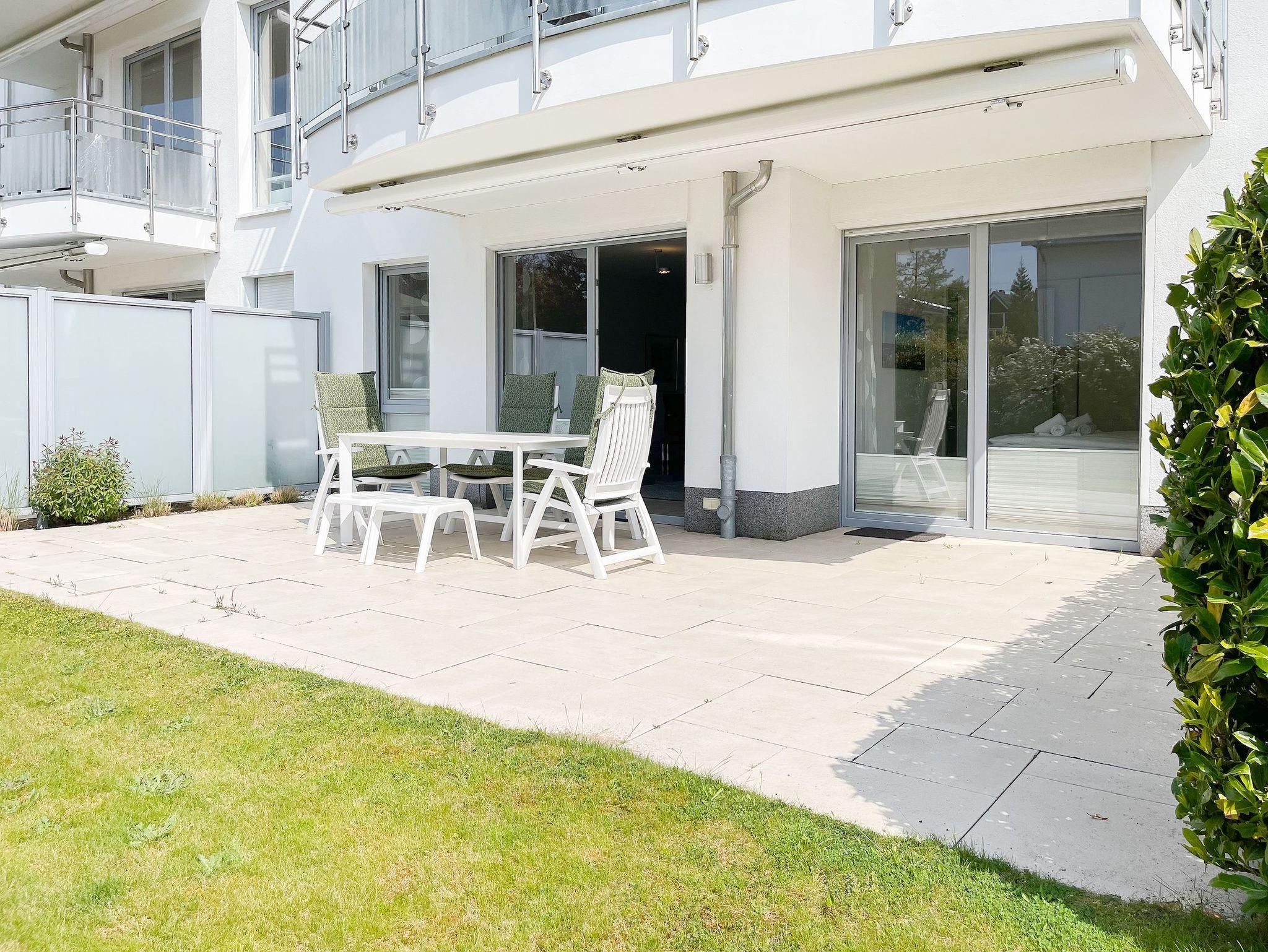 Bei der Ausstattung der Wohnung wurde viel Wert auf hochwertige Materialien und exklusives Mobiliar gelegt. Große, bodentiefe Fensterelemente (mit elektrischen Außenjalousien versehen) sorgen für helle, sonnige Wohnräume.[nbsp] Die 70 qm große Wohnung bietet[nbsp] viel Platz für 2 Personen. Es erwartet Sie ein großzügiger Wohnbereich mit hochwertiger Couchgarnitur, TV, DVD Player, Stereo Anlage, DSL Anschluß und WLAN, ein angrenzender Essbereich für 4 Personen und eine bestens ausgestattete offene Miele Einbauküche, die über Backofen, Ceranfeld und Geschirrspüler verfügt. Im geräumigen Schlafzimmer befindet sich ein Doppelbett (180x200) sowie ein großer Schrank mit viel Staufläche. Das Duschbad ist modern und hochwertig. Die schöne, 30 qm große Südwest Terrasse ist sowohl vom Wohn- als auch vom Schlafraum zu betreten und mit einer elektrischen Markise versehen. Genießen Sie zu jeder Tageszeit die Sonne und entspannen auf den komfortablen Gartenmöbeln.
