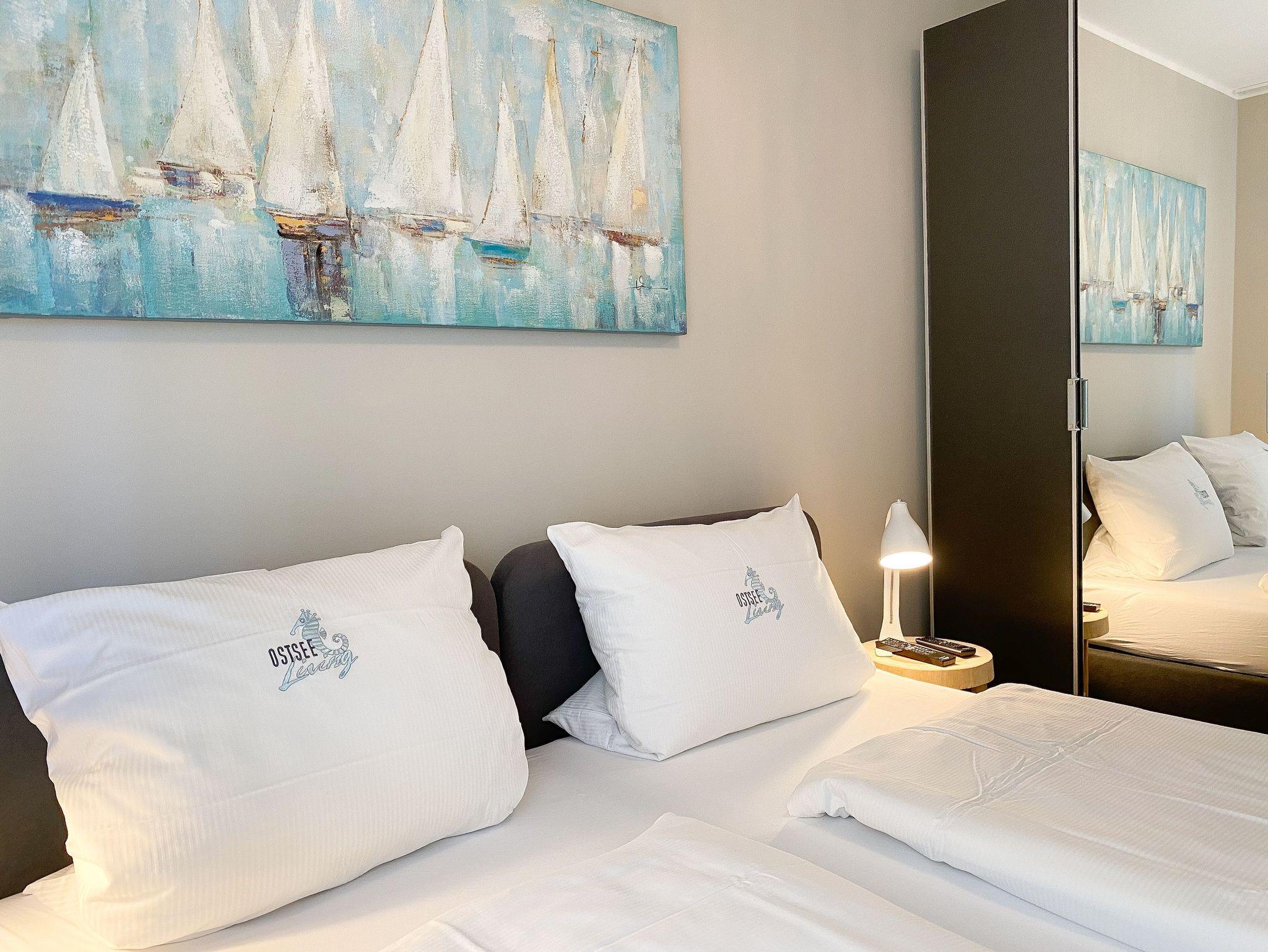 Die hochwertige Ferienwohnung Fritz Strandkate verfügt über einen großzügigen Wohnbereich mit angrenzendem Essbereich, der ausreichend Platz für 6 Personen bietet. TV, Hifi Anlage und WLAN sind selbstverständlich vorhanden. Bodentiefe Fensterelemente und die Südausrichtung der Wohnung sorgen für helle und sonnige Räumlichkeiten. Sämtliche Fenster sind mit elektrischen Außenjalousien versehen und die Fußbodenheizung sorgt für ein angenehmes Raumklima.[nbsp] Die offene, hochwertige Einbauküche ist bestens ausgestattet und lässt keine Wünsche offen. Es stehen zwei separate Schlafzimmer mit TV zur Verfügung. [nbsp]Eines ist mit einem komfortablen Doppelbett[nbsp] ausgestattet, das andere mit zwei Einzelbetten, die sich schnell zusammen stellen lassen. Das Bad ist sehr hochwertig und verfügt über eine bodentiefe XXL Dusche. Ein separates Gäste WC ist selbstverständlich vorhanden. Das Haus am Meer verfügt über einen Fahrstuhl und eine Tiefgarage (Einfahrtshöhe 2 m), in der ein fester Stellplatz reserviert ist. Ein Fahrradkeller, Münzwaschmaschine und -Trockner sind vorhanden.