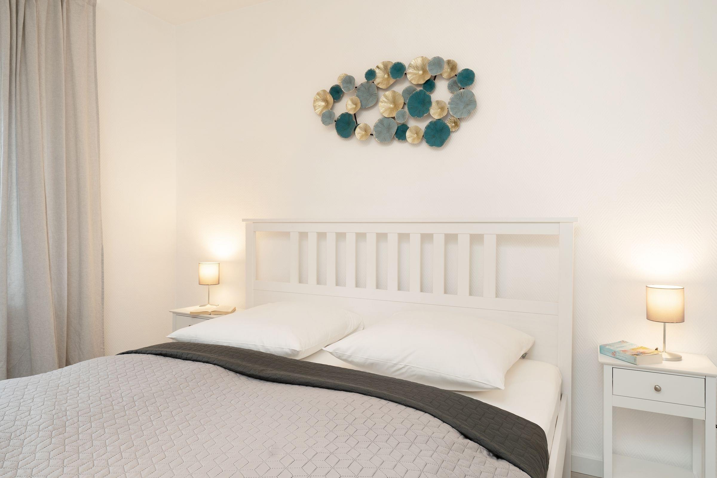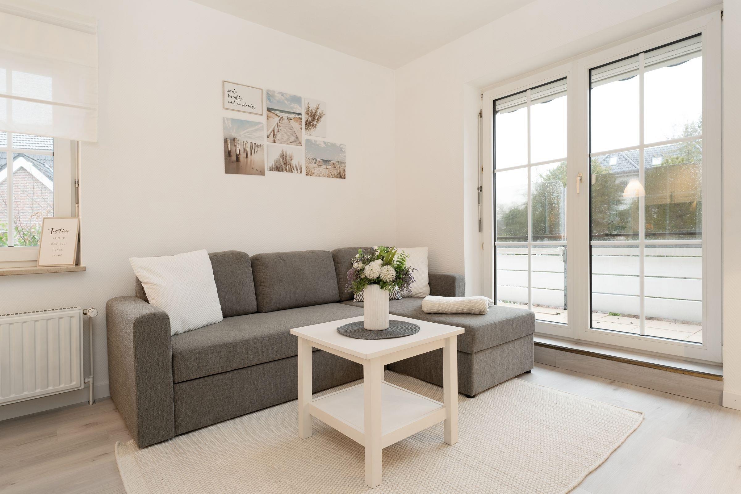 Frühstück im Strandkorb auf dem Balkon – was für ein perfekter Start in den Tag. Die schöne Ferienwohnung Jankar in dem gepflegten Ferienwohnhaus Windrose macht dies möglich. Doch der überdachte Balkon lädt nicht nur morgens zum Verweilen ein. Sicher wird Sie auch der liebevoll eingerichtete Wohnbereich begeistern. Die offene Küche präsentiert sich modern mit Induktionsherd, Tassimo-Maschine und Geschirrspüler und wird Ihre Selbstversorgung angenehm gestalten. Für die Nacht lässt sich das Schlafsofa (130x200 cm) in ein bequemes Doppelbett verwandeln. Im separaten Schlafzimmer steht ein gemütliches Doppelbett (180x200 cm), verdunkelt wird jeweils mit Außenjalousien. Das großzügige, tageslichthelle Duschbad verfügt über einen Föhn und einen Handtuchwärmer.