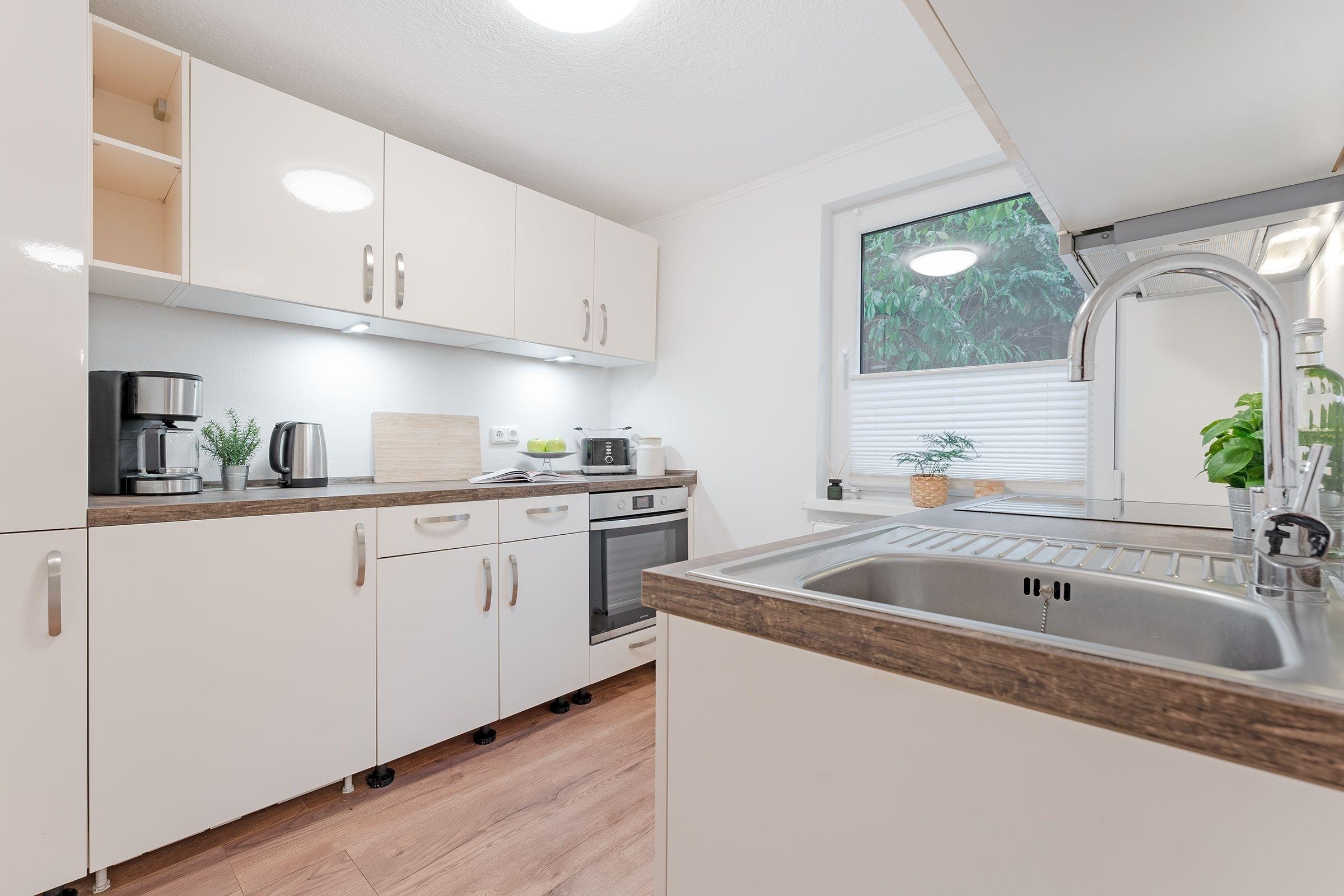 Im hellen und modernen Wohnzimmer erwartet Sie eine gemütliche Schlafcouch (140x200 cm) und Essbereich, der zum gemeinsamen Essen oder Spiele-Abenden einlädt. Ein Flachbild-TV sowie kostenfreies WLAN sorgt für weitere Unterhaltung. Lieber raus an die frische Luft? Im gepflegten Gemeinschaftsgarten können Sie zahlreiche Sonnenstunden genießen.