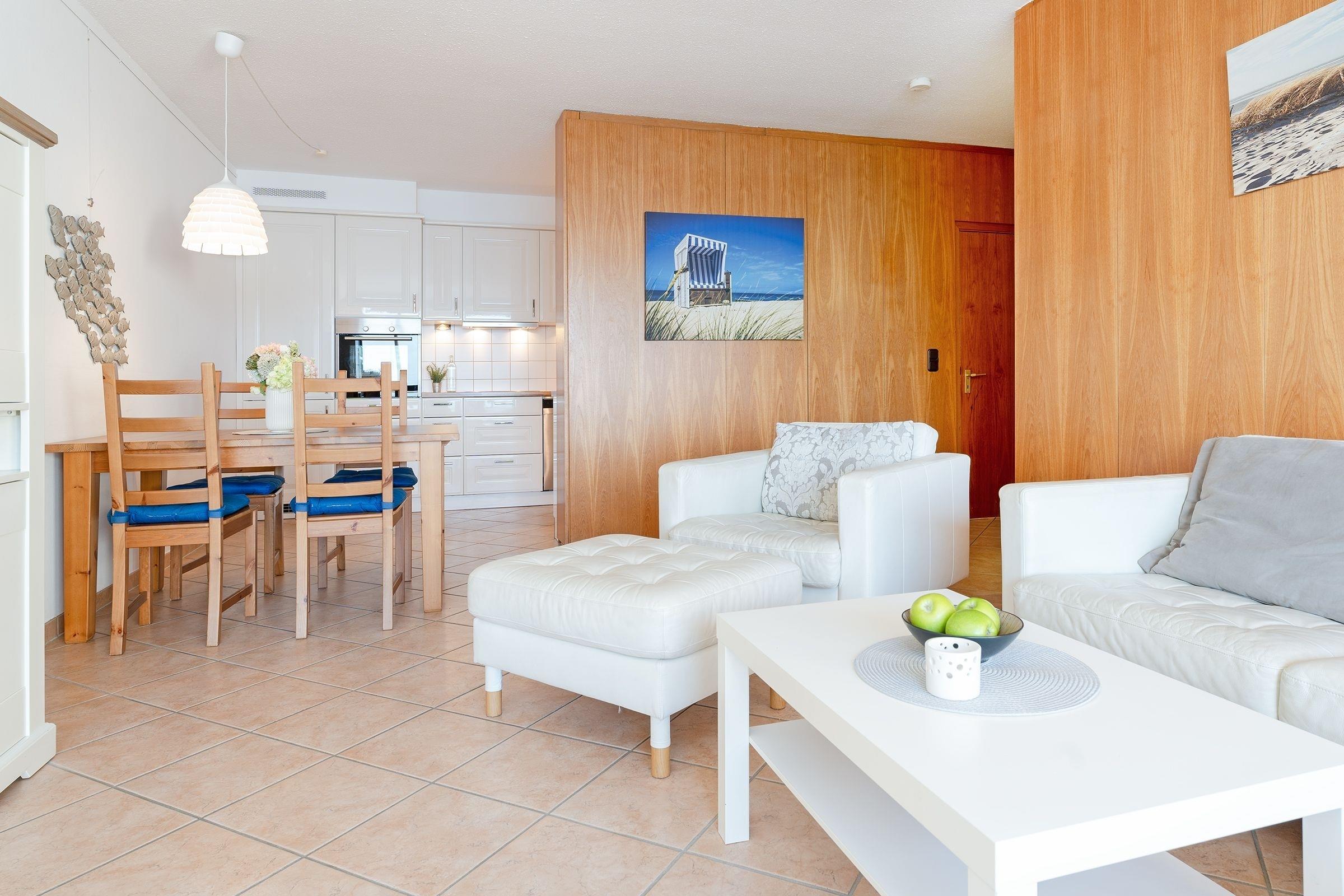 Strandnahe 3-Zimmer-Ferienwohnung in Timmendorfer Strand mit 86 m² Wohnfläche und Balkon mit Meerblick für bis zu 4 Personen.