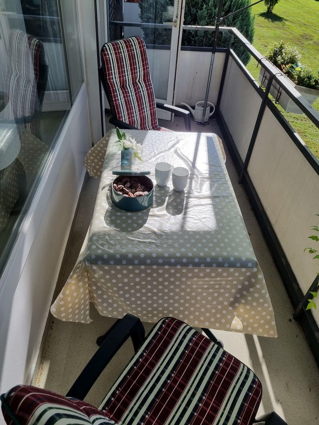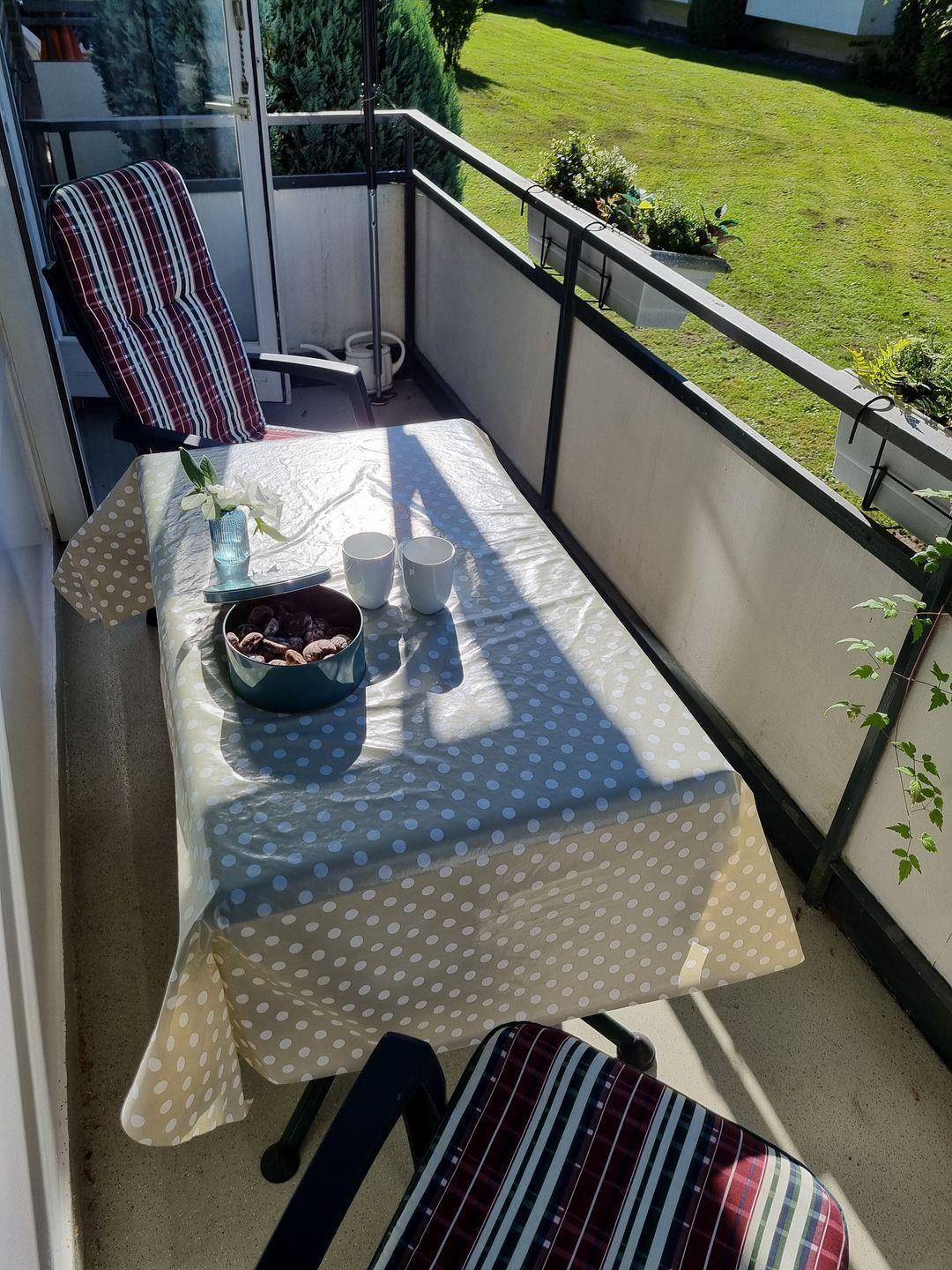 Der Balkon mit Blick in den Garten schließt mit großen Fenstern direkt an den Wohnbereich an. Ob sie es bevorzugen, draußen zu frühstücken oder ein Glas Wein am Abend zu genießen, bleibt Ihnen überlassen.