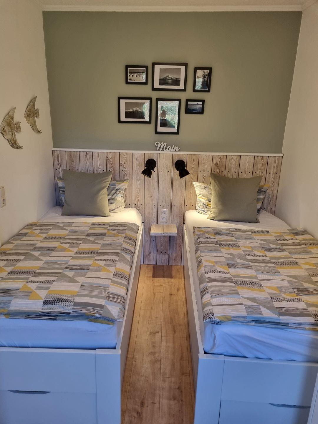 Die Wohnung bietet ein Schlafzimmer mit zwei Einzelbetten und einem Schrank .