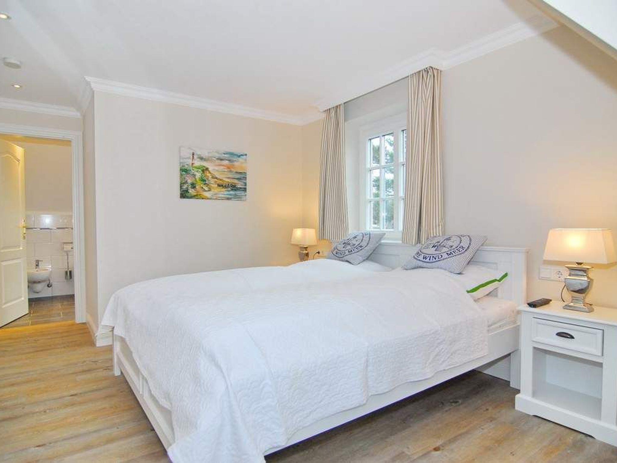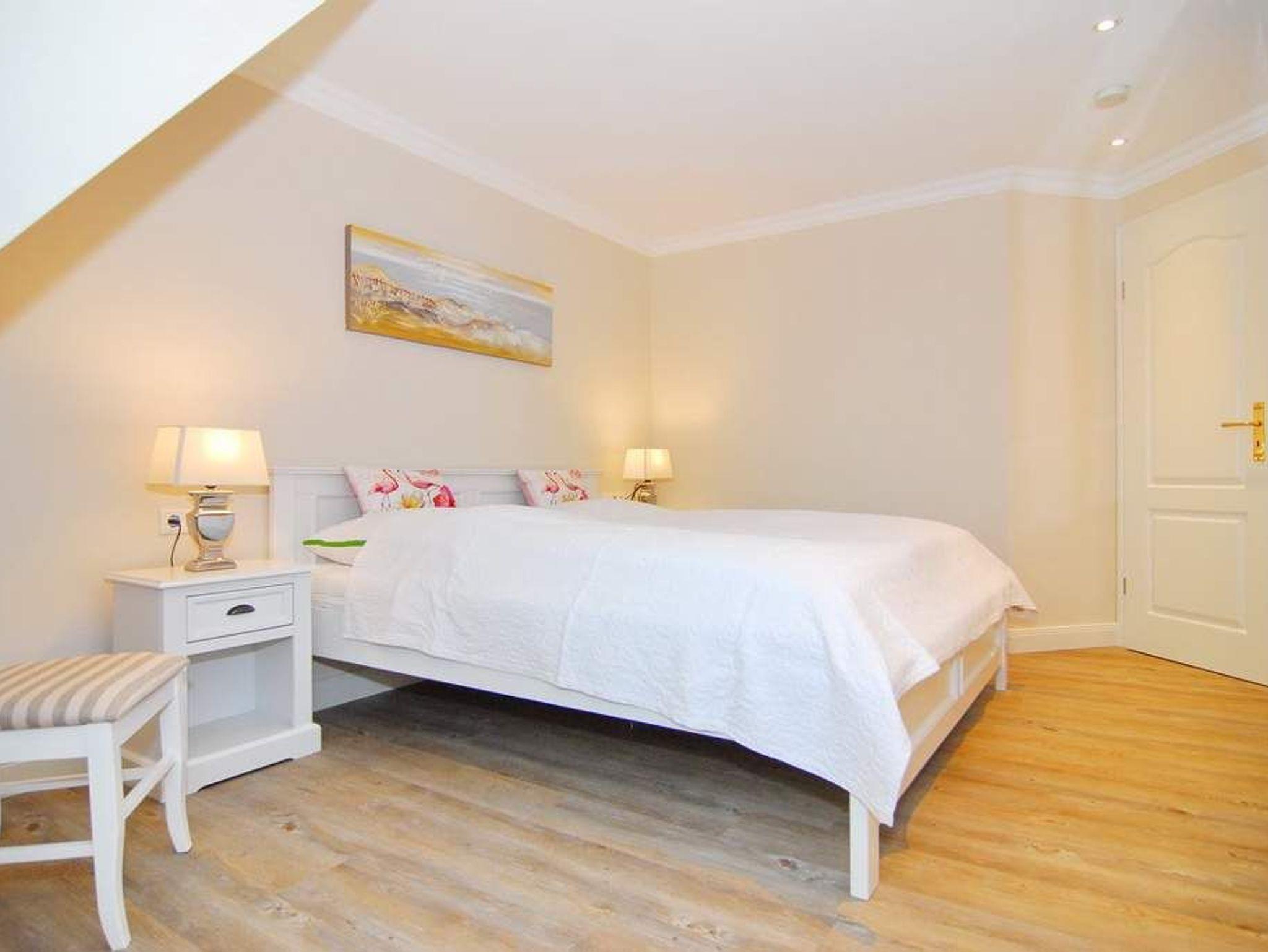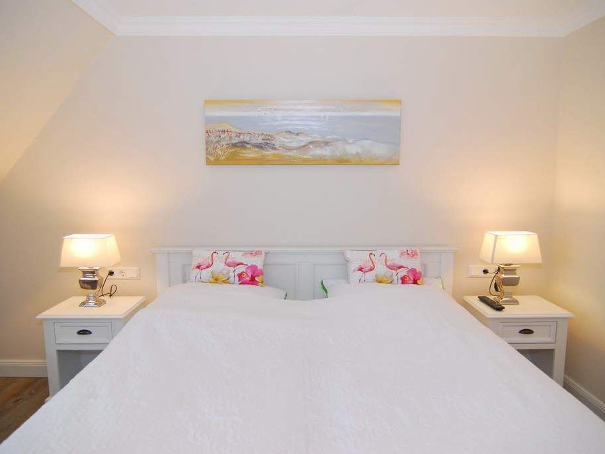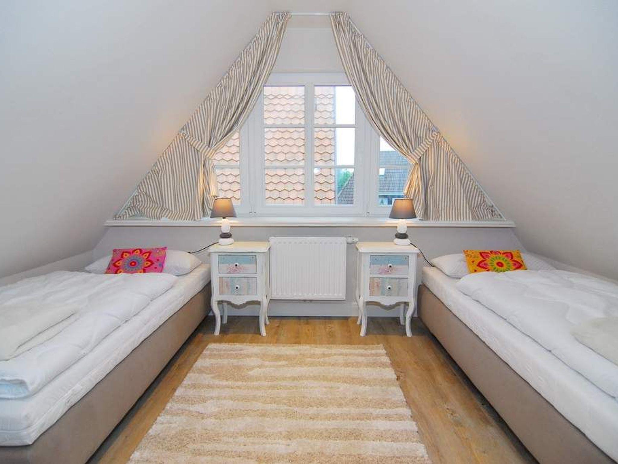 Exklusive Haushälfte in zentraler Dorflage Tinnums. Ca. 157m² für 6 Personen. EG: Großes Wohnzimmer mit Sitz- und Essecke, Flat-TV, WLan (ohne Gewähr), Kamin und offener Küche mit Backofen, Mikrowelle und Geschirrspüler. Möblierte Südterrasse und Garten. Hauswirtschaftsraum mit Waschmaschine und Trockner, Flur und Gäste-WC. Im Obergeschoss befinden sich 2 Schlafzimmer mit Doppelbetten, Einbauschränken und Flat-TV, 1 Duschbad ensuite, 1 Wannbad mit Duschvorrichtung, 1 Raum mit Sauna. Im DG befindet sich ein Schlafzimmer mit 2 Einzelbetten und ein offener Lebensraum. Tierhaltung ist gestattet und muss kostenpflichtig bei der Buchung angemeldet werden. Bettwäsche und Handtücher sind zur Anreise aufgezogen. 2 Stellplätze am Haus stehen Ihnen zur Verfügung.