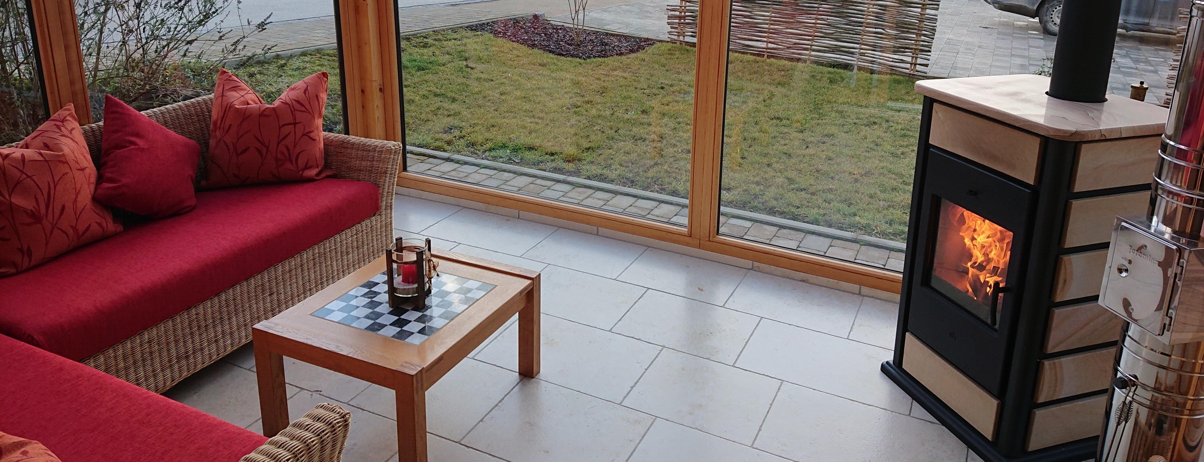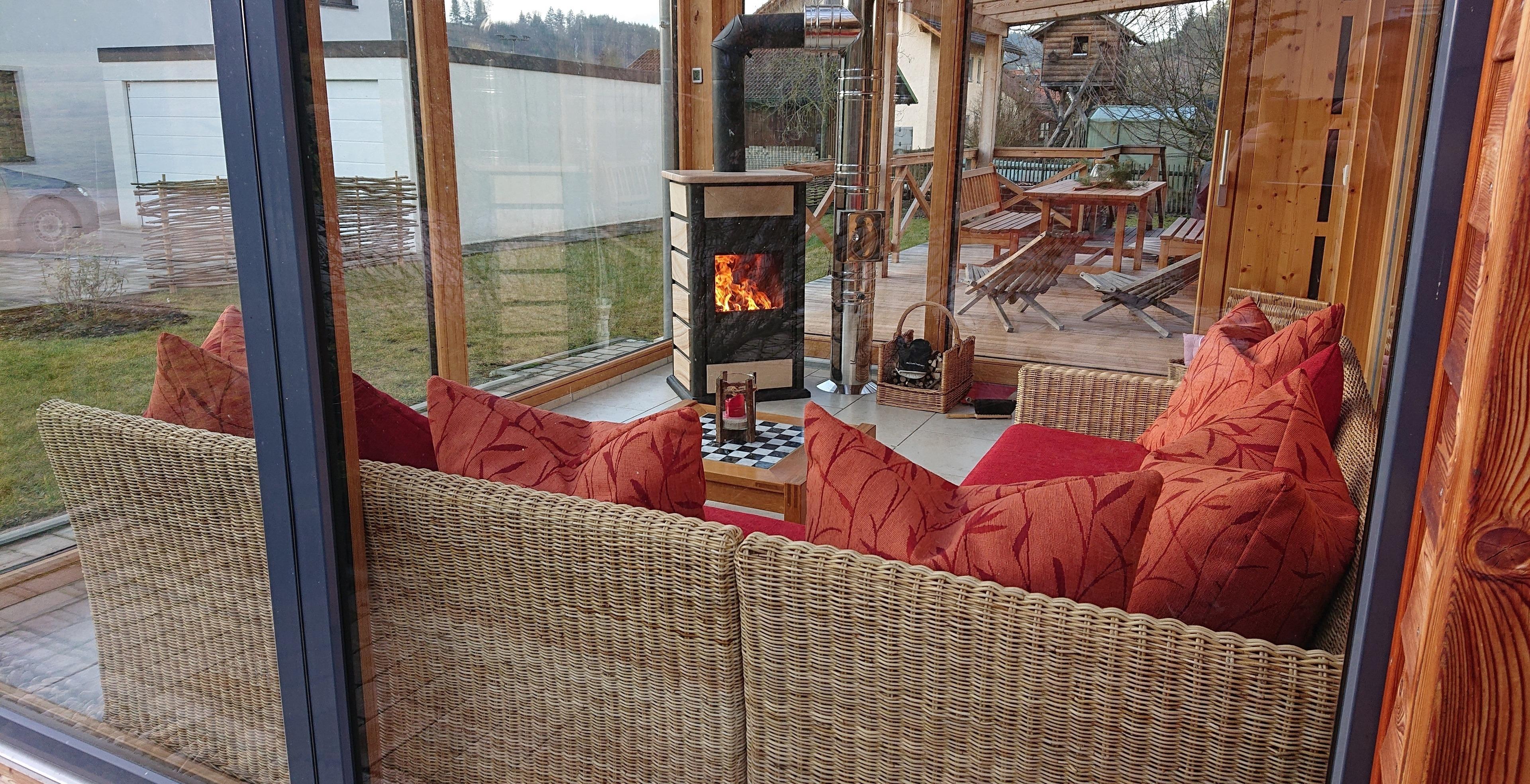 - ein gemütlicher Wintergarten mit Holzofen und ein eigener Garten mit Terrasse.