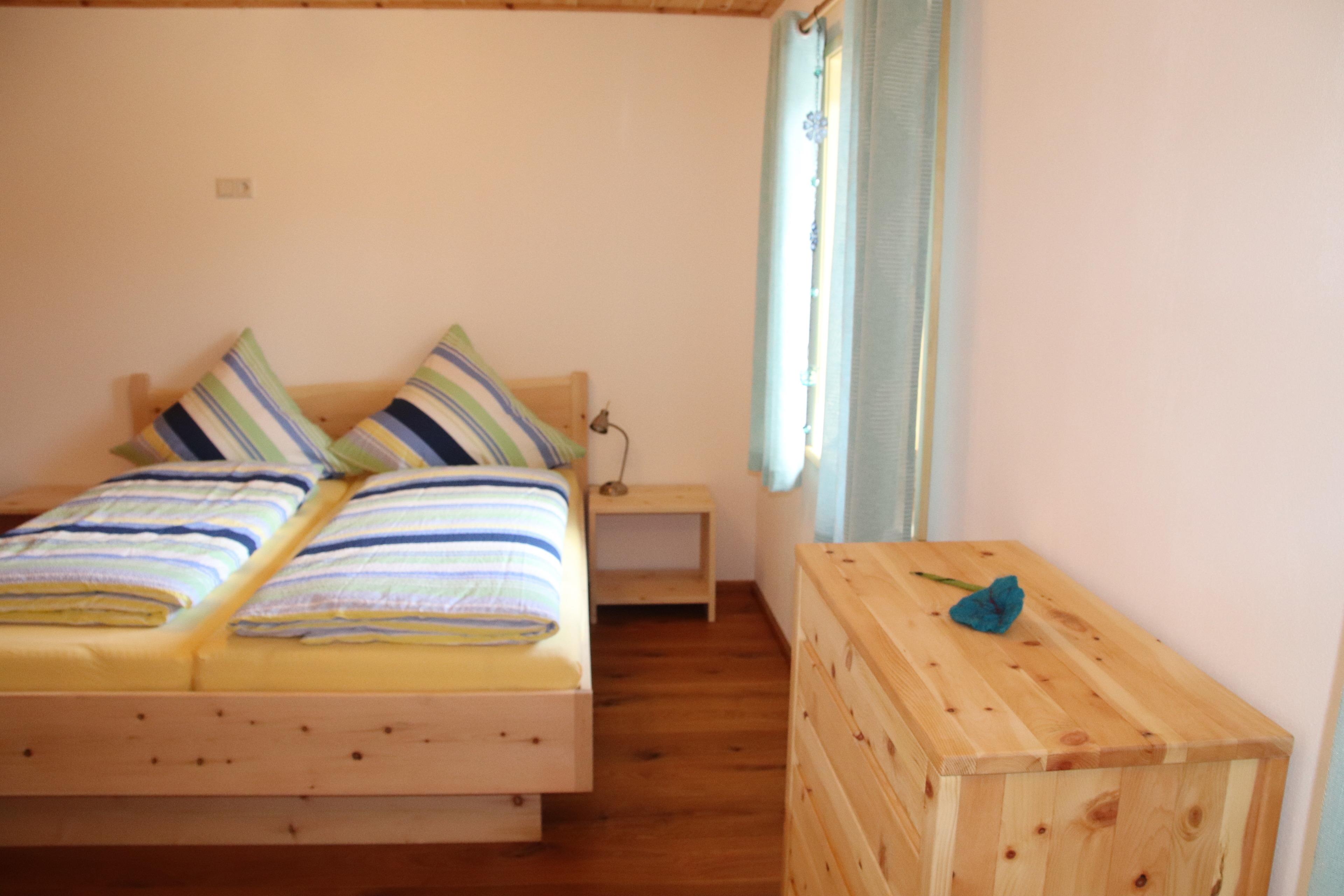 - Schlafzimmer I besteht aus einem Doppelbett (1,80 x 2,00 m) sowie einem Kinderbett (0,70 x 1,40 m)