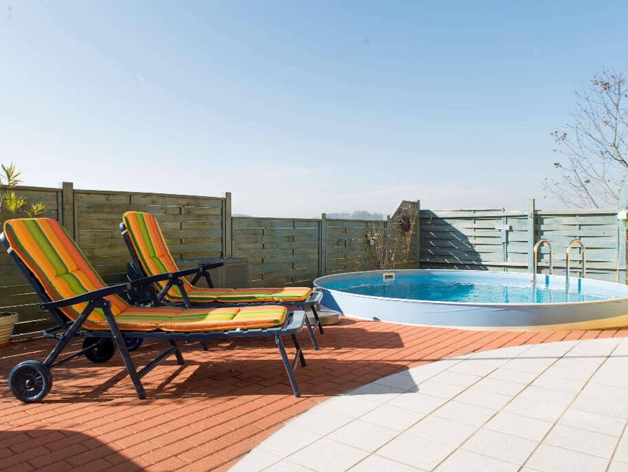 Swimmingpool, Liegestühle und Sonnenschirm sind vorhanden. Ein PKW-Stellplatz ist vorhanden und kann von Ihnen kostenfrei genuzt werden. Die komplette Wohnung besteht aus Nichtraucherzimmern.