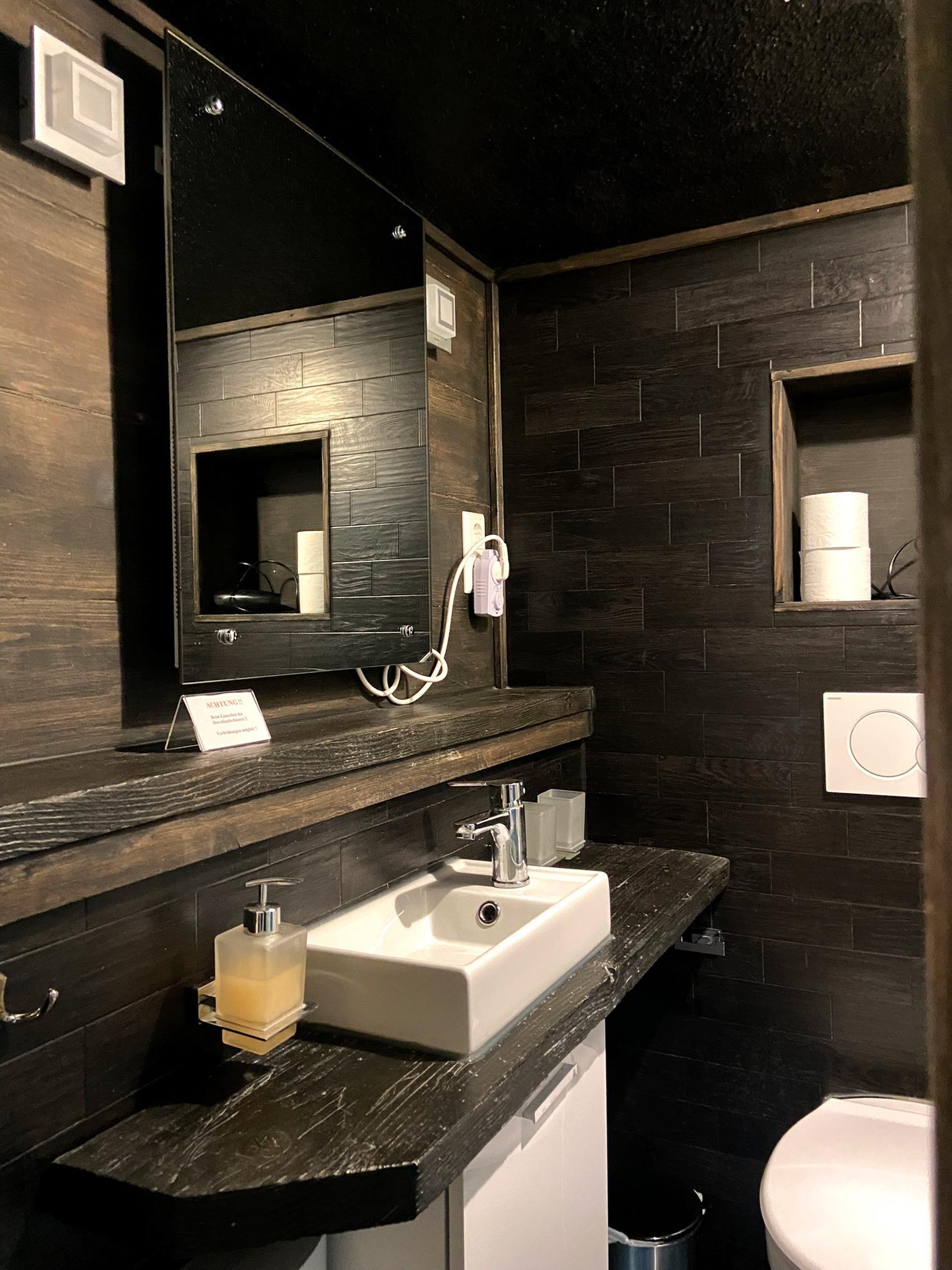 Auf dieser Ebene befindet sich auch ein kleines Badezimmer mit Dusche und WC.