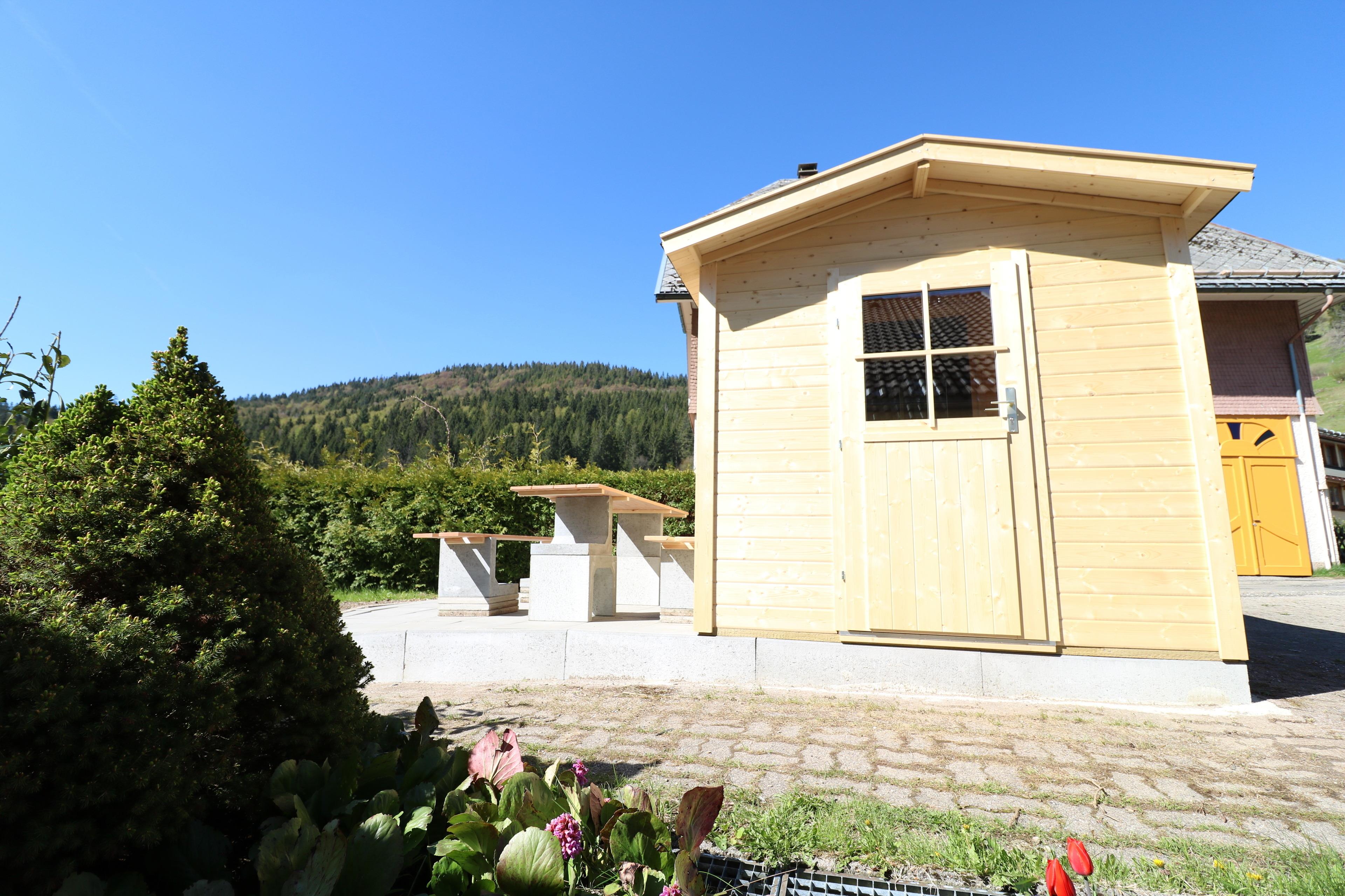 Im Garten steht eine privates Saunahäuschen in dem Sie herrlich entspannen können.... sowie eine Gartensitzgruppe.