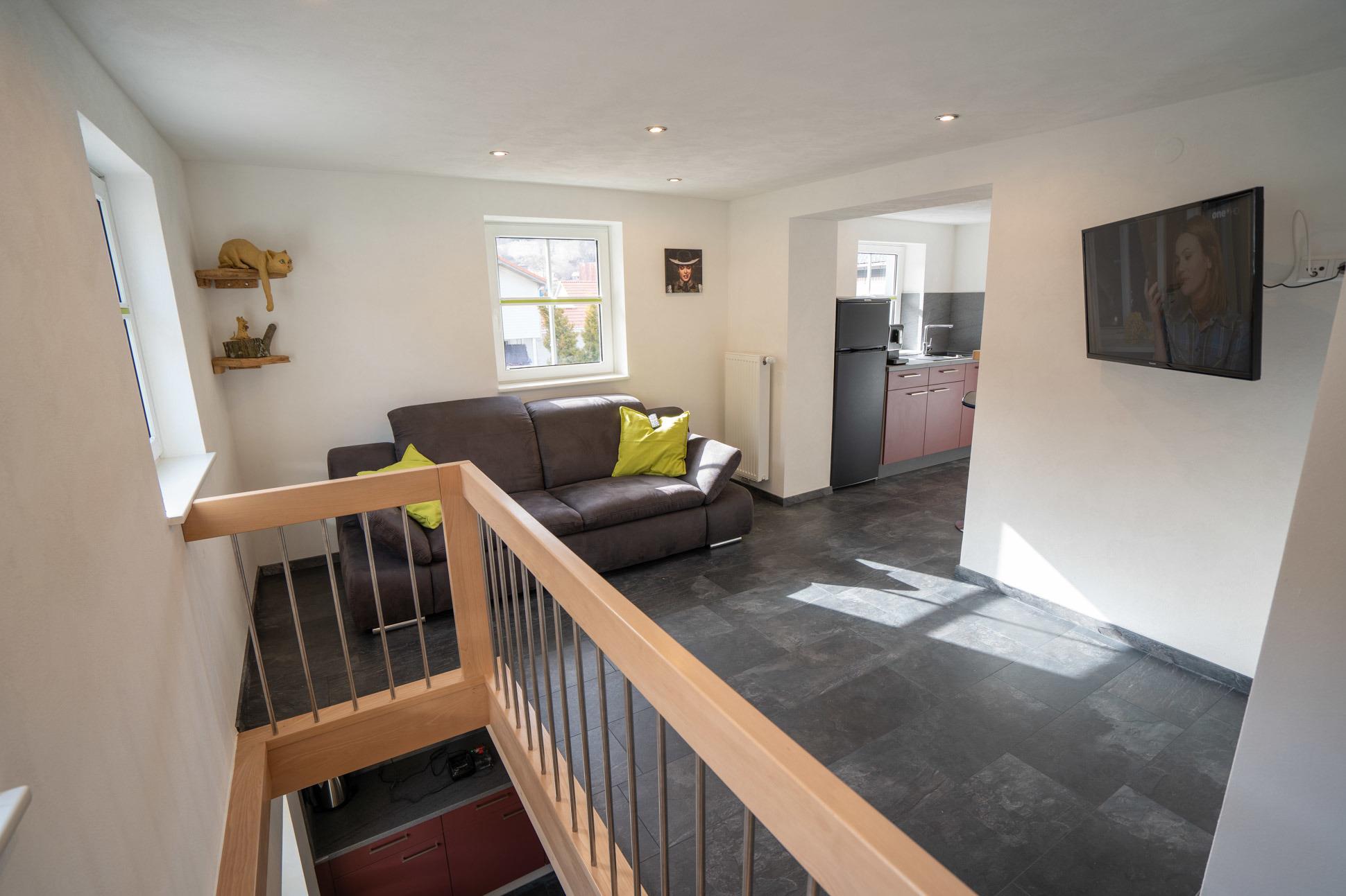 - Wohnraum im EG mit Musikbox, Flachbild Sat-TV und Sofa für 6 Personen
