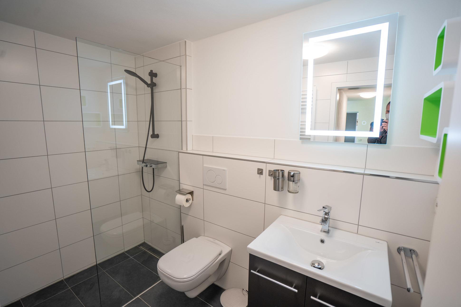 - zwei Badezimmer, jeweils mit begehbarer Dusche, WC und Föhn