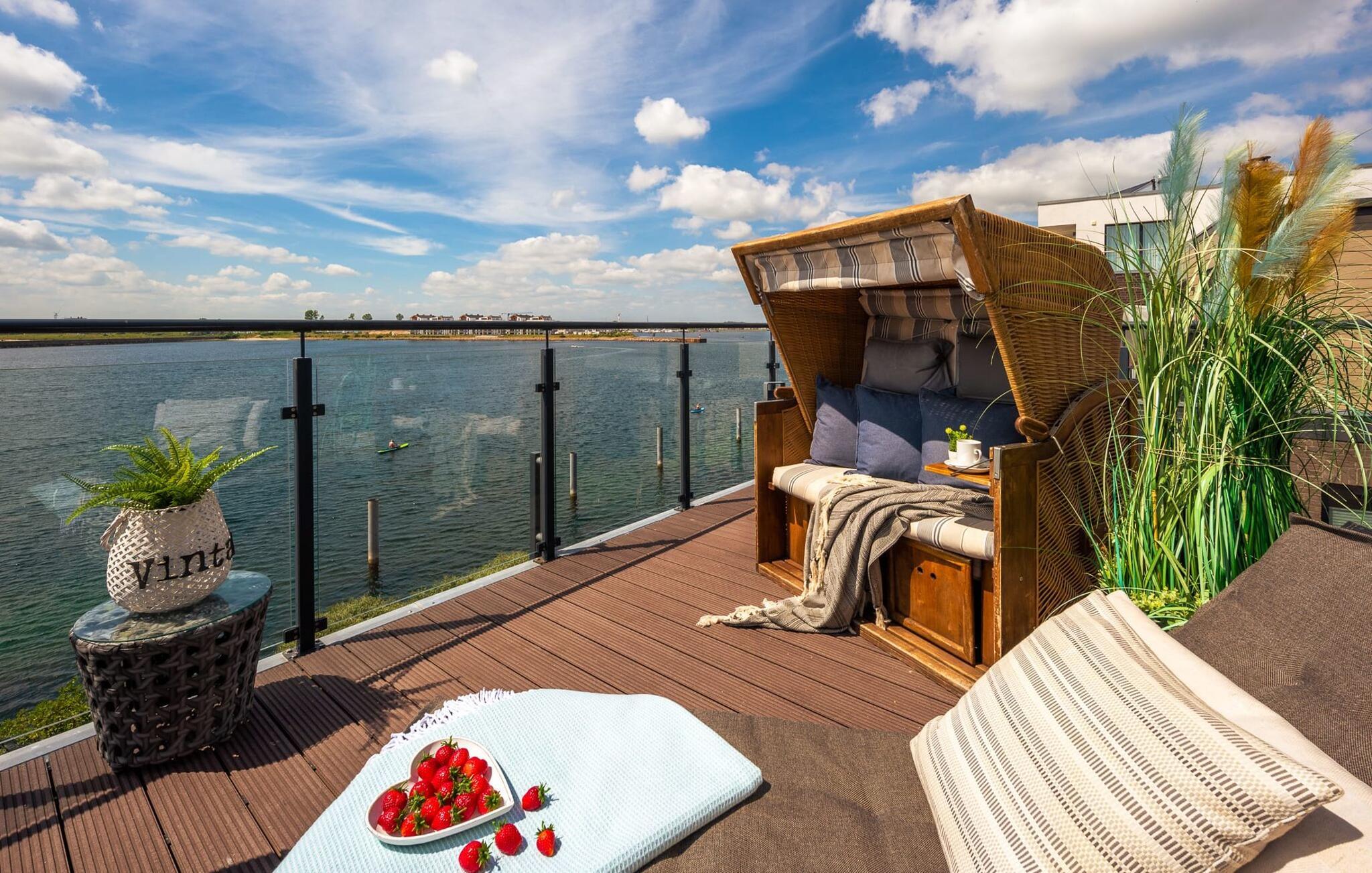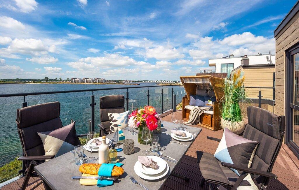 Im Norden des Ostseeresorts Olpenitz auf der ins Meer hineinragenden Mole und in unmittelbarer Wassernähe liegt die außergewöhnliche Ferienwohnung Traumblick auf der Ostsee mit Penthouse und großer Sonnenterrasse, die einen traumhaften Blick auf die weite Ostsee, die Schleimündung und den Hafen des Ostseeresorts bietet.