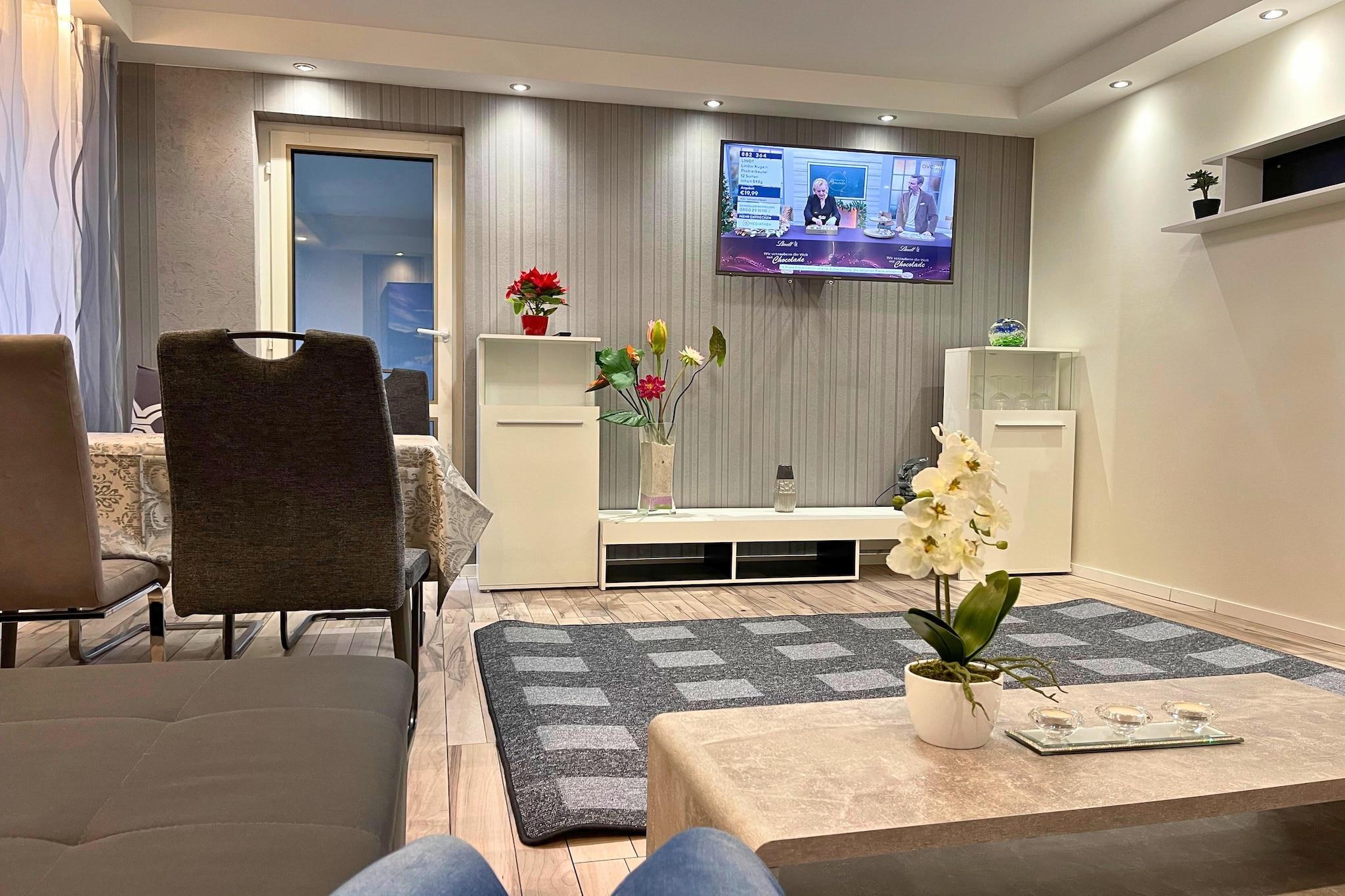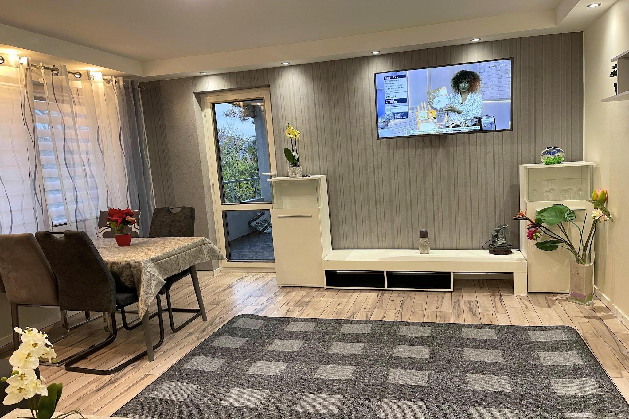 Located in the historic heart of Trier, this well-appointed apartment is a perfect choice for families or small groups seeking both comfort and convenience. With its spacious layout, the apartment offers a welcoming living room complete with a single sofa bed, TV, dining table, and seating area—ideal for relaxing after a day of sightseeing. The fully equipped kitchen includes a cooker, oven, microwave, dishwasher, coffee machine, and fridge, making home-cooked meals easy and enjoyable. The apartment features two bedrooms, each with two single beds, offering flexible sleeping arrangements for up to four guests. The bathroom includes a modern shower, toilet, washbasin, and a hairdryer for added convenience. Guests can enjoy a cup of coffee or unwind in the fresh air on the private balcony. Families traveling with children will appreciate the available children’s bed and high chair, while practical amenities like a paid washing machine and tumble dryer, parking, and lift access ensure a stress-free stay. Step outside and explore the many wonders of Trier—the oldest city in Germany. Visit the famous Porta Nigra, a well-preserved Roman gate, or explore the ancient Roman baths and the impressive Trier Cathedral. The bustling Hauptmarkt offers charming shops and cafes, while the Moselle River invites scenic walks and boat tours. With its blend of rich history, vibrant culture, and natural beauty, Trier provides the perfect backdrop for your stay in this comfortable apartment.