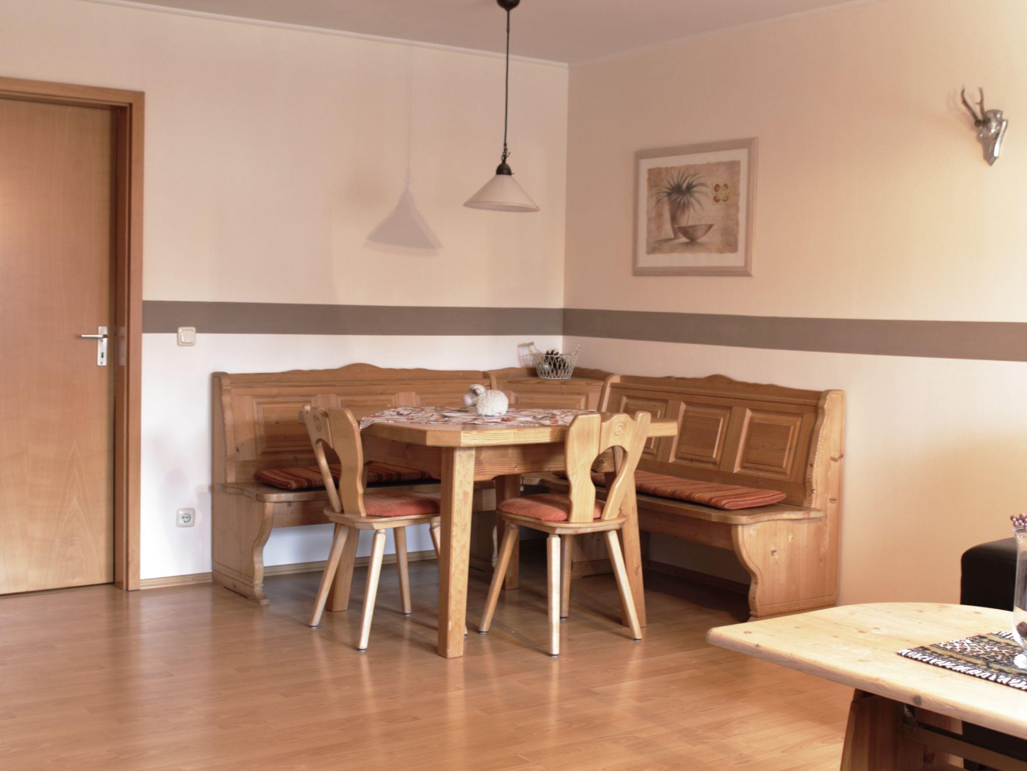 Auch befindet sich hier ein großer Esstisch mit Eckbank und 2 Stühlen.
