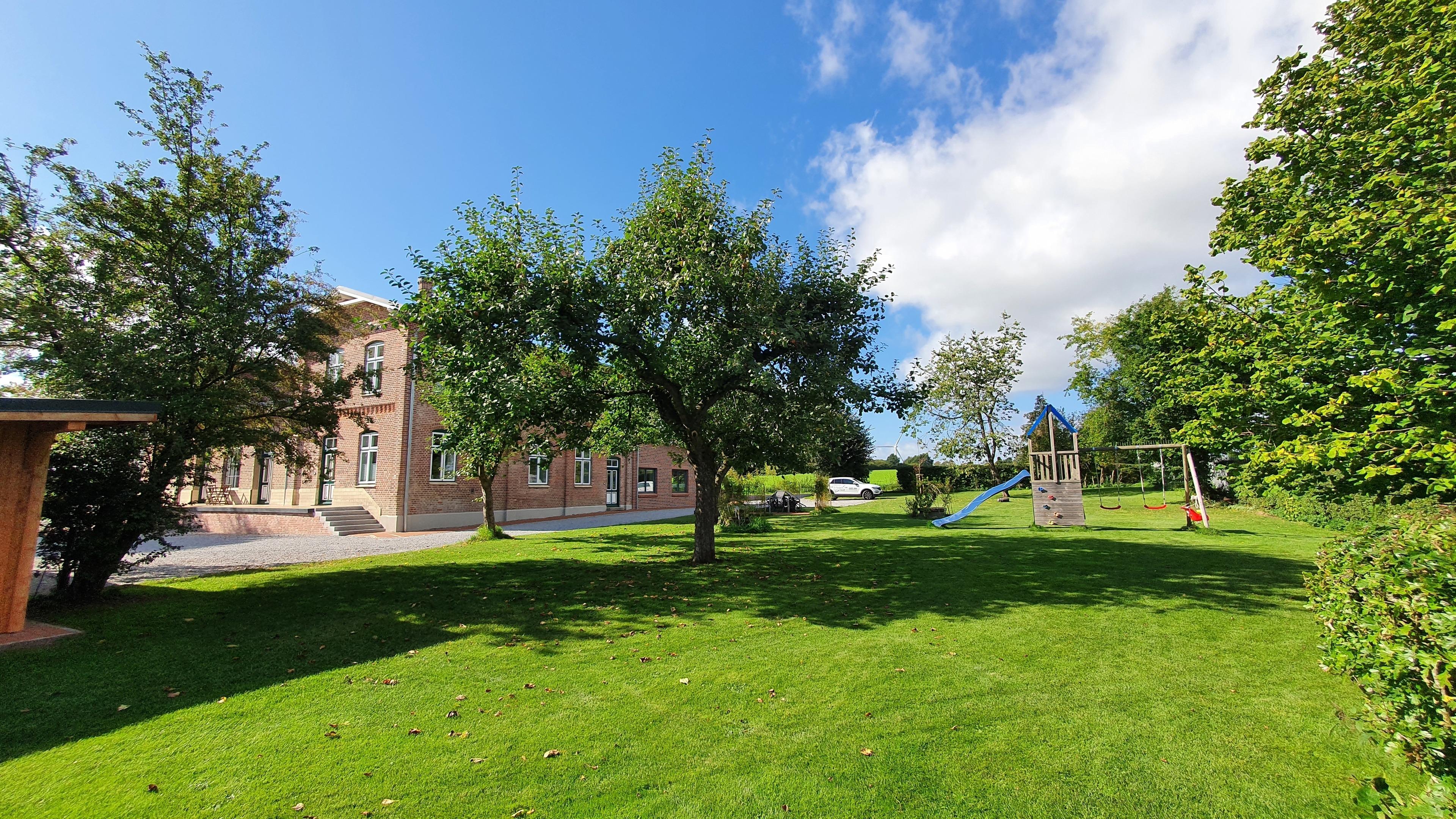 Der etwa 1000 Quadratmeter große Garten lädt zum Sonnen und Spielen ein und kann von allen Feriengästen genutzt werden. Für unsere kleinen Gäste gibt es Kinderspielgeräte und bei schönem Wetter kann im Garten gegrillt werden. Im Herbst können Sie Äpfel und Pflaumen von alten Obstbäumen ernten.