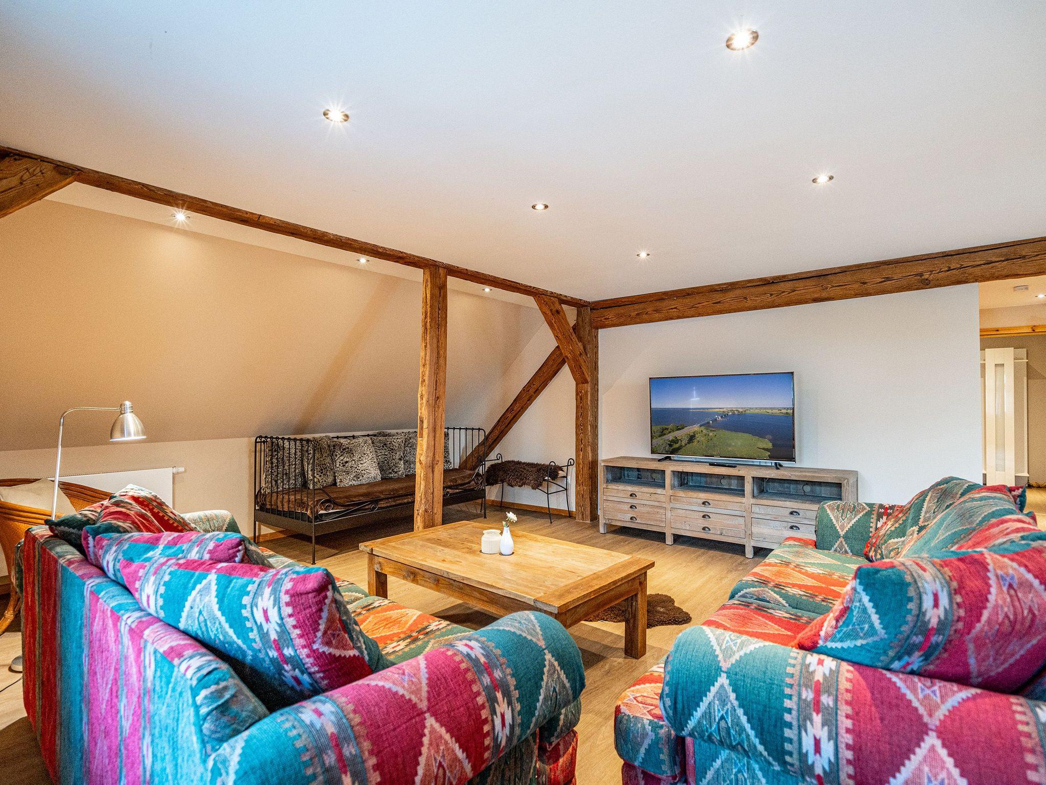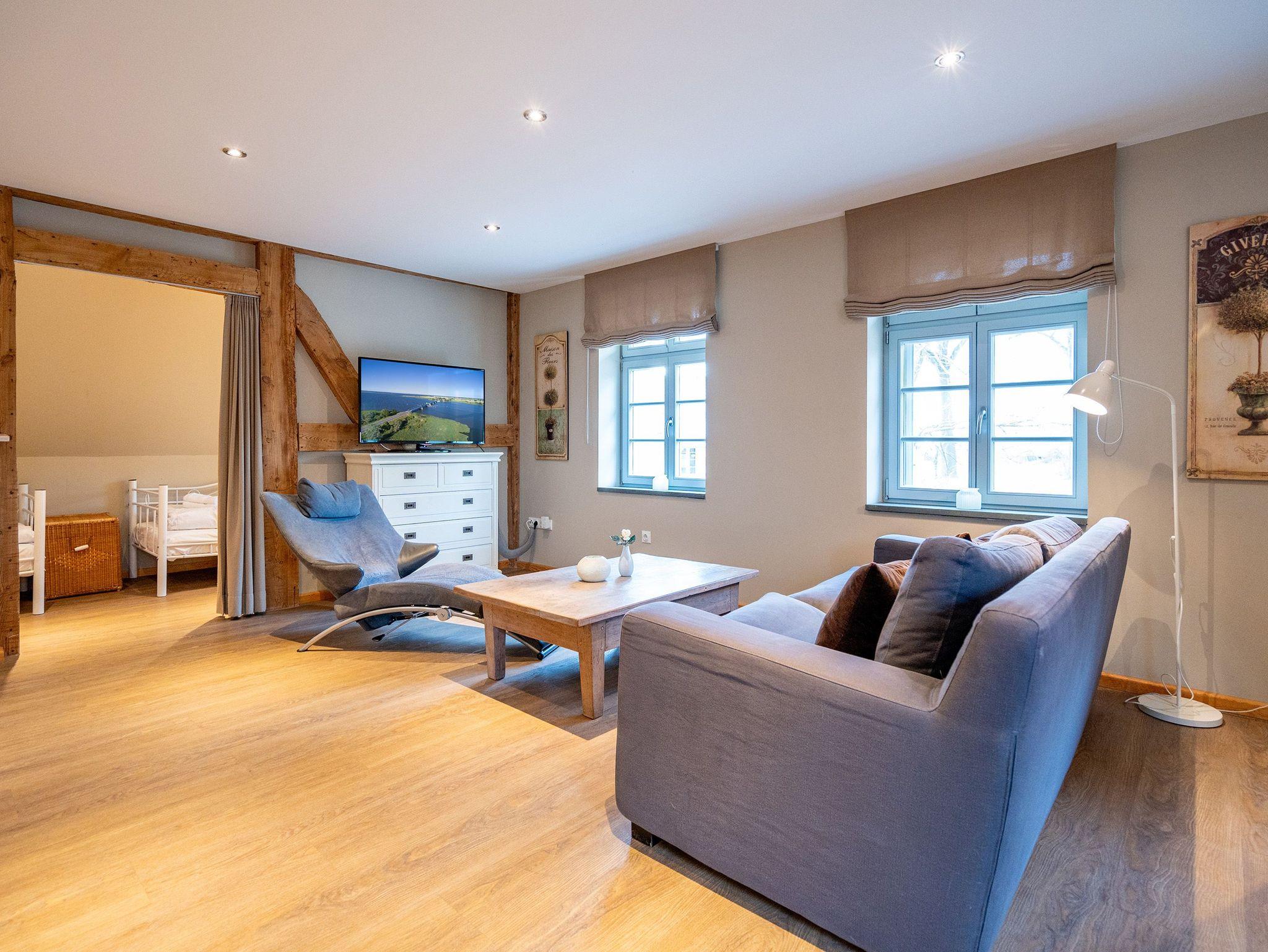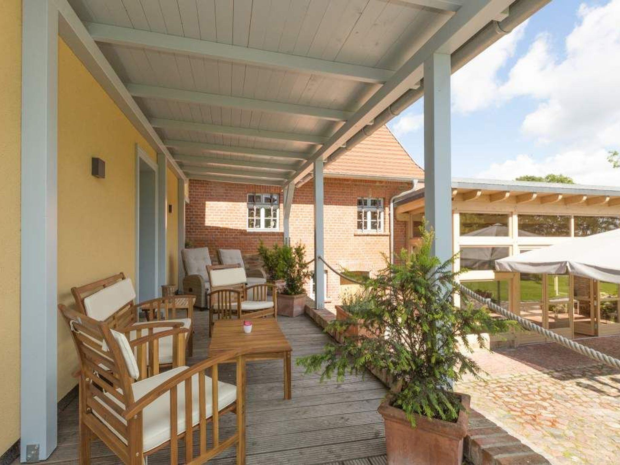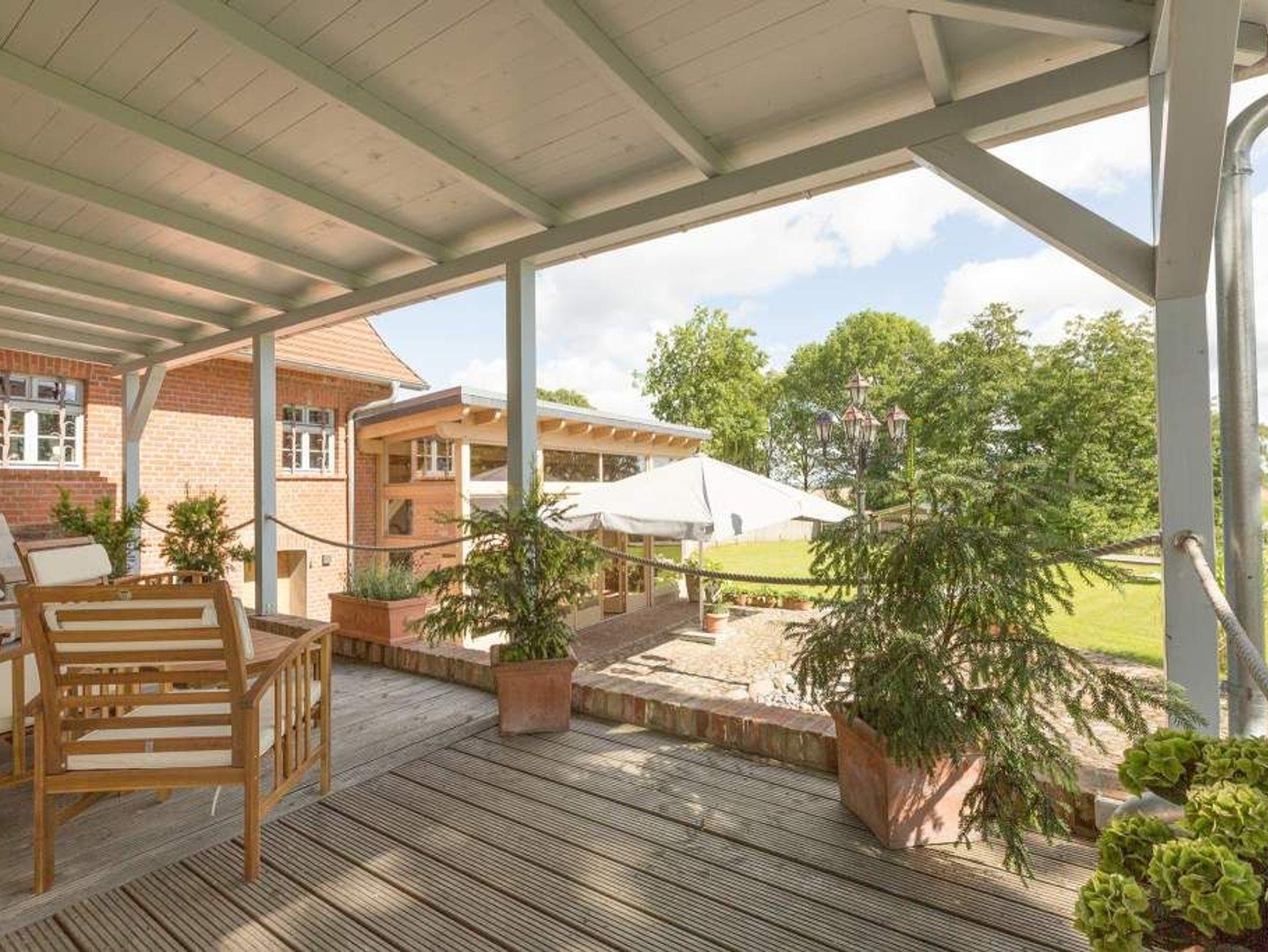 Umgeben von einer wunderschönen und weitläufigen Natur bietet das Anwesen Gut Landleben viel Raum für einen Urlaub in großer Gesellschaft. Egal, ob mit der Familie, Freunden oder Kindern ? auf dem weitläufigen Grundstück mit einem geräumigen Wohnhaus haben bis zu 14 Personen und 3 Kleinkinder im Alter von bis zu zwei Jahren im Kinderreisebett auf zwei Etagen ausreichend Platz für eine gemeinsame Auszeit. Bei der Ankunft empfängt Sie eine schöne, große und offene Veranda mit Tisch und Stühlen, auf der man laue Sommerabende ausgiebig genießen kann.