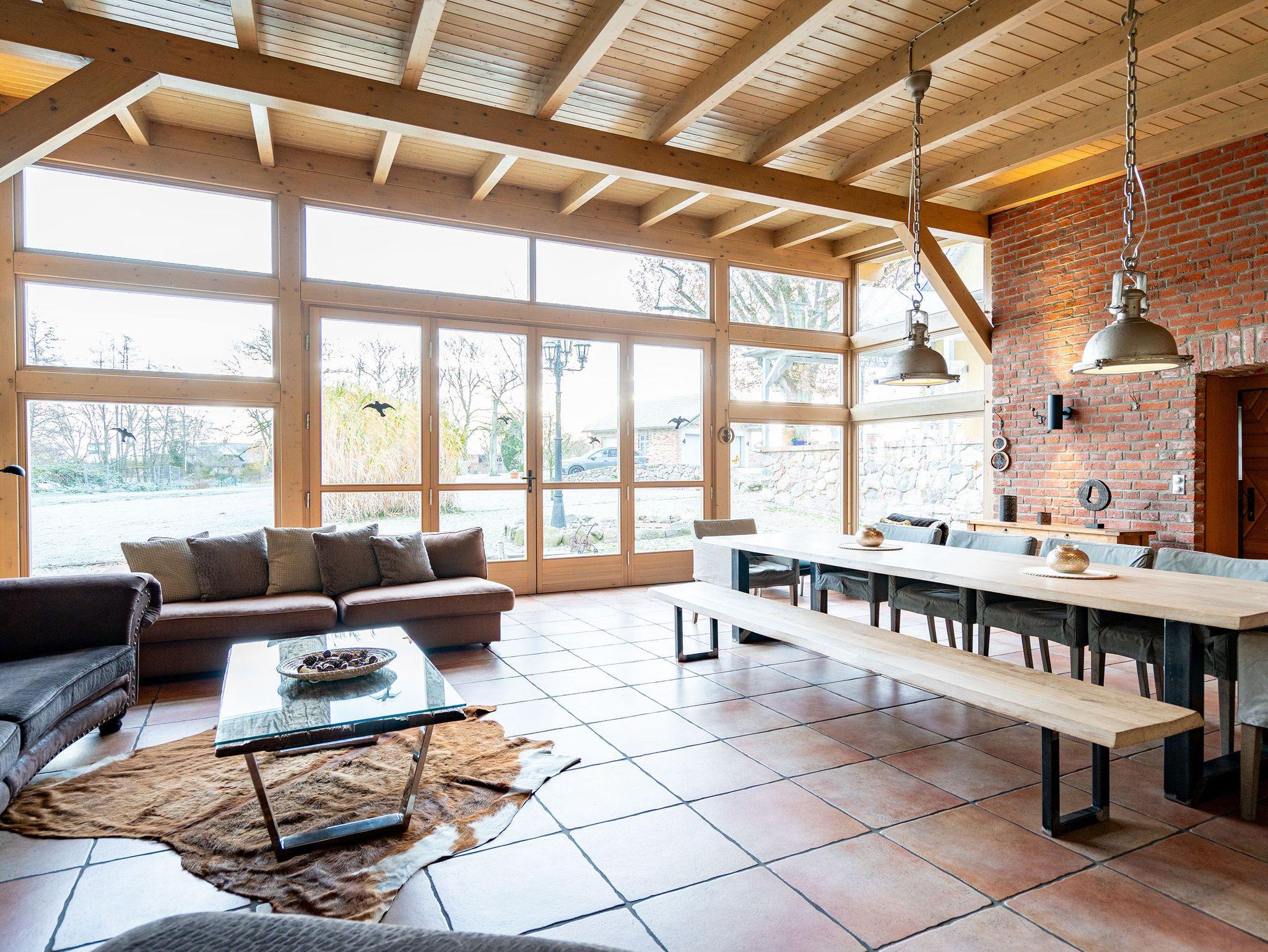 Umgeben von einer wunderschönen und weitläufigen Natur bietet das Anwesen Gut Landleben viel Raum für einen Urlaub in großer Gesellschaft. Egal, ob mit der Familie, Freunden oder Kindern auf dem weitläufigen Grundstück mit einem geräumigen Wohnhaus haben bis zu 14 Personen und 3 Kleinkinder im Alter von bis zu zwei Jahren im Kinderreisebett auf zwei Etagen ausreichend Platz für eine gemeinsame Auszeit. Bei der Ankunft empfängt Sie eine schöne, große und offene Veranda mit Tisch und Stühlen, auf der man laue Sommerabende ausgiebig genießen kann.