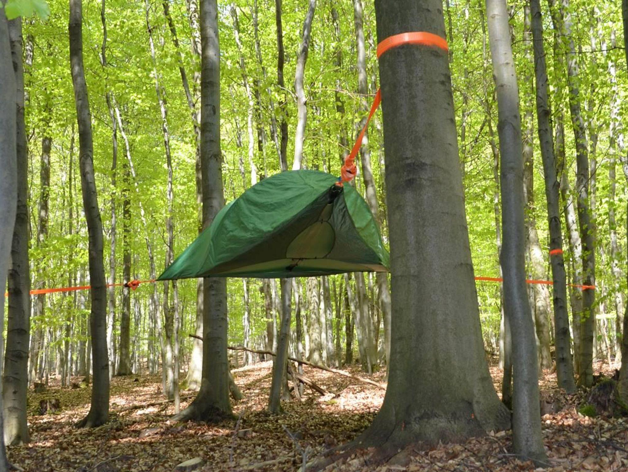 Mehr Natur geht nicht. Die Zelte sind jeweils zwischen drei Bäume gespannt und schweben in ca. 1,5 m Höhe über dem Waldboden. Beim Baumzelt Buche sind stehen hauptsächlich Buchen in der Nähe. Für die Übernachtung im Baumzelt ist ein Schlafsack sowie eine Isomatte erforderlich!