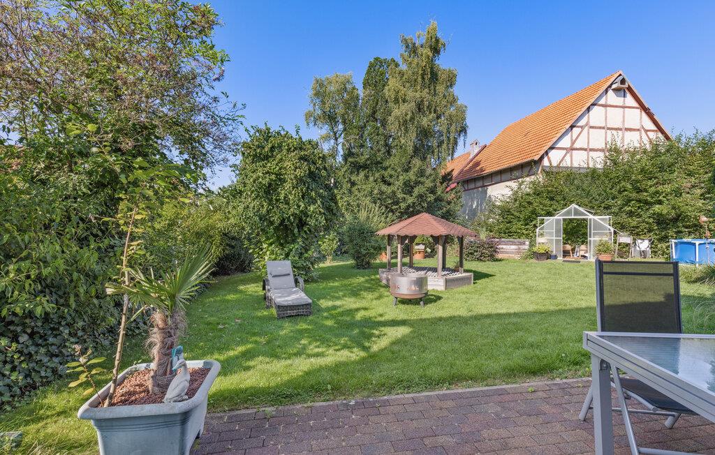 Genießen Sie den Tag auf der Terrasse mit Blick in den grünen Garten – perfekt für entspannte Stunden oder ein gemütliches Frühstück im Freien.
