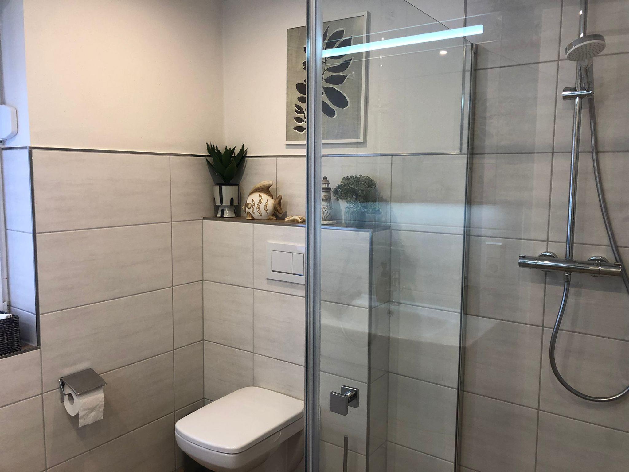 Die Fewo verfügt über 1 Schlafzimmer mit zwei Einzel-Boxspringbetten. Das Badezimmer mit ebenerdiger Dusche, großem Spiegel & Handtuchtrockner rundet das Gesamtbild ab. Bitte beachten Sie, dass keine Haustiere erlaubt sind.