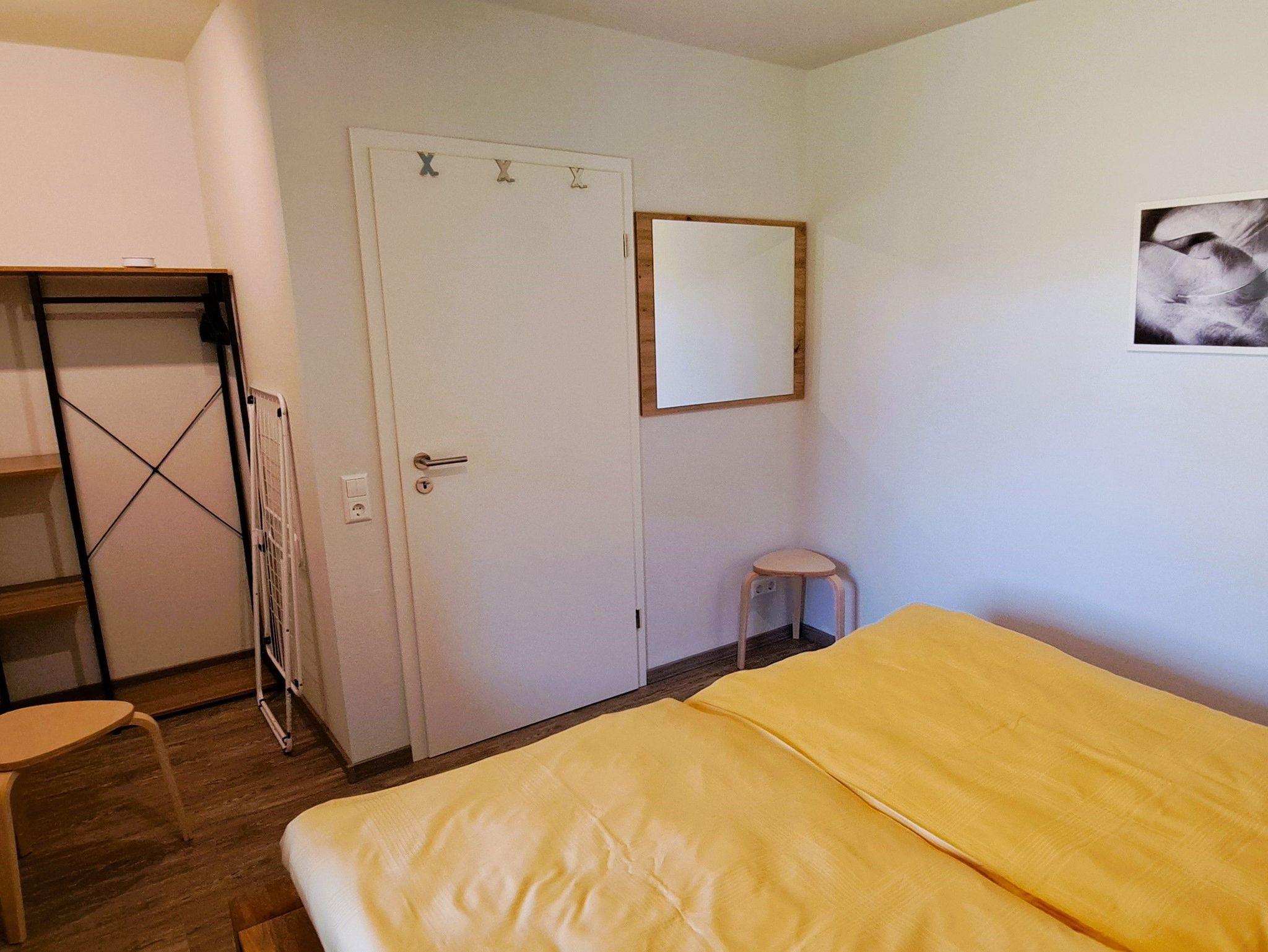 Willkommen in unserer gemütlichen Ferienwohnung! Beim Betreten erwartet Sie ein einladender Eingangsbereich mit einer praktischen Garderobe und einem Schuhregal, wo Sie Ihre Jacken und Schuhe bequem ablegen können.