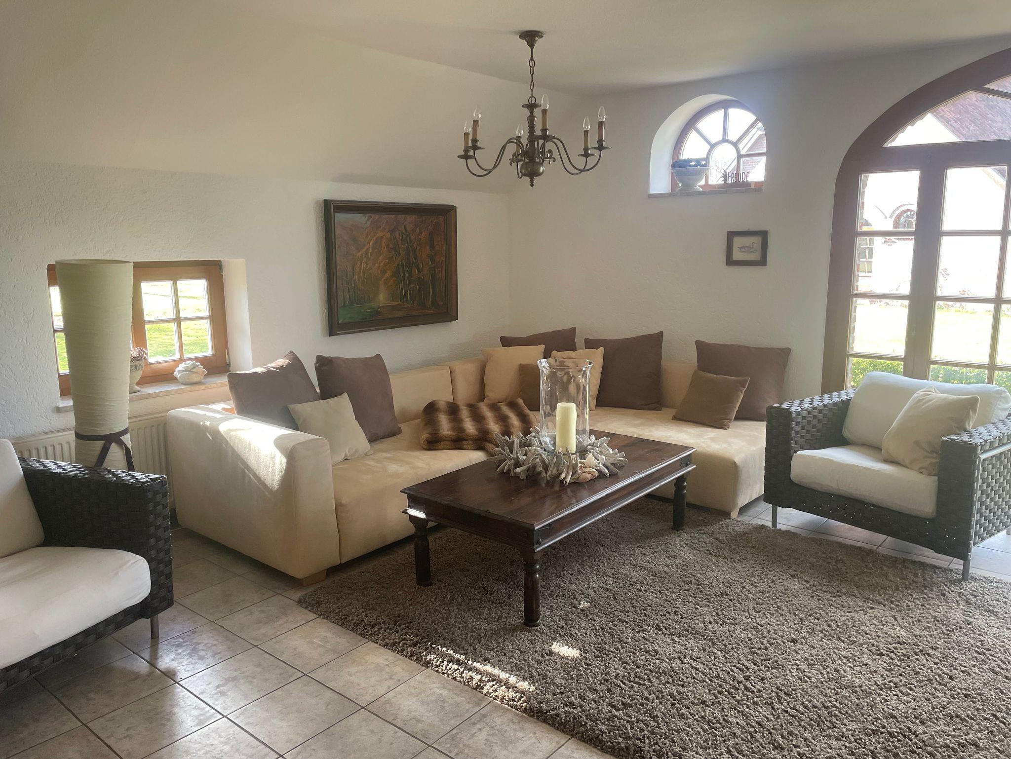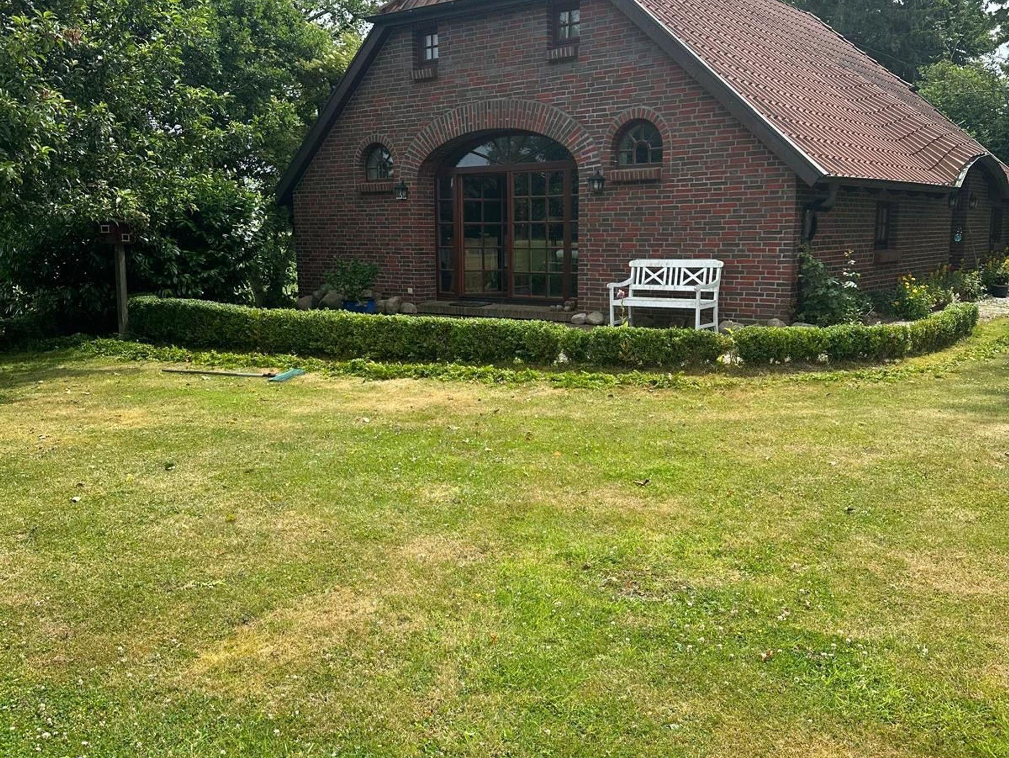 Der große Garten und eine sonnige Terrasse laden zum Verweilen und Entspannen ein.