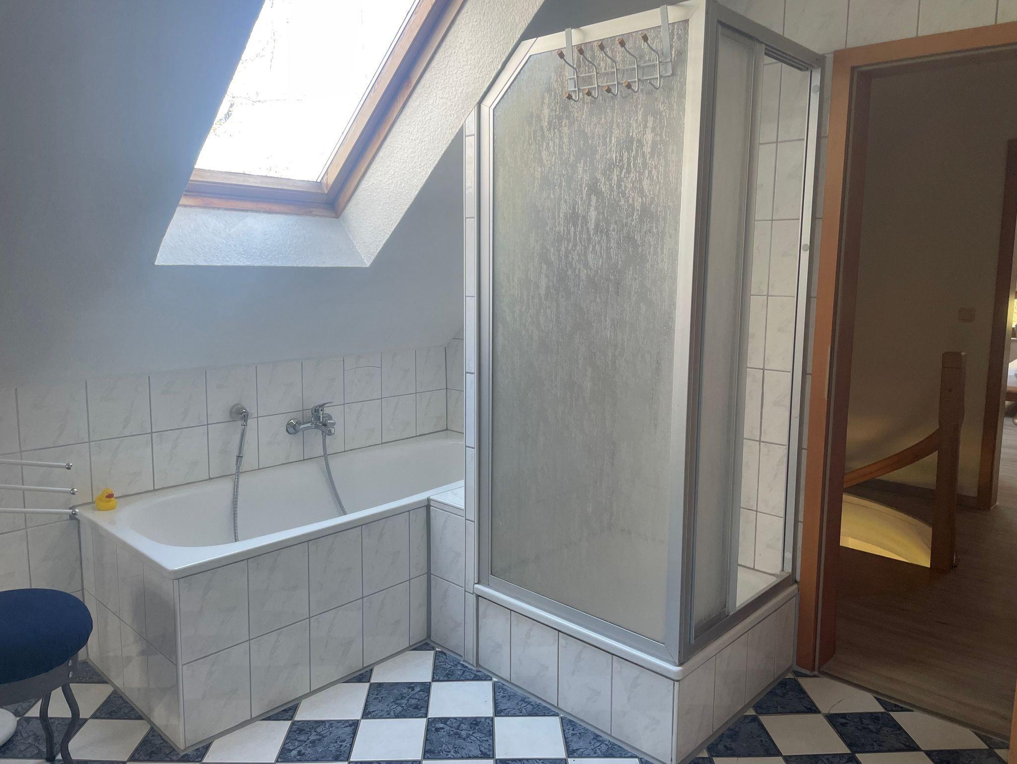 Im Ober-/Dachgeschoss befinden sich das zweite Schlafzimmer und das Duschbad.