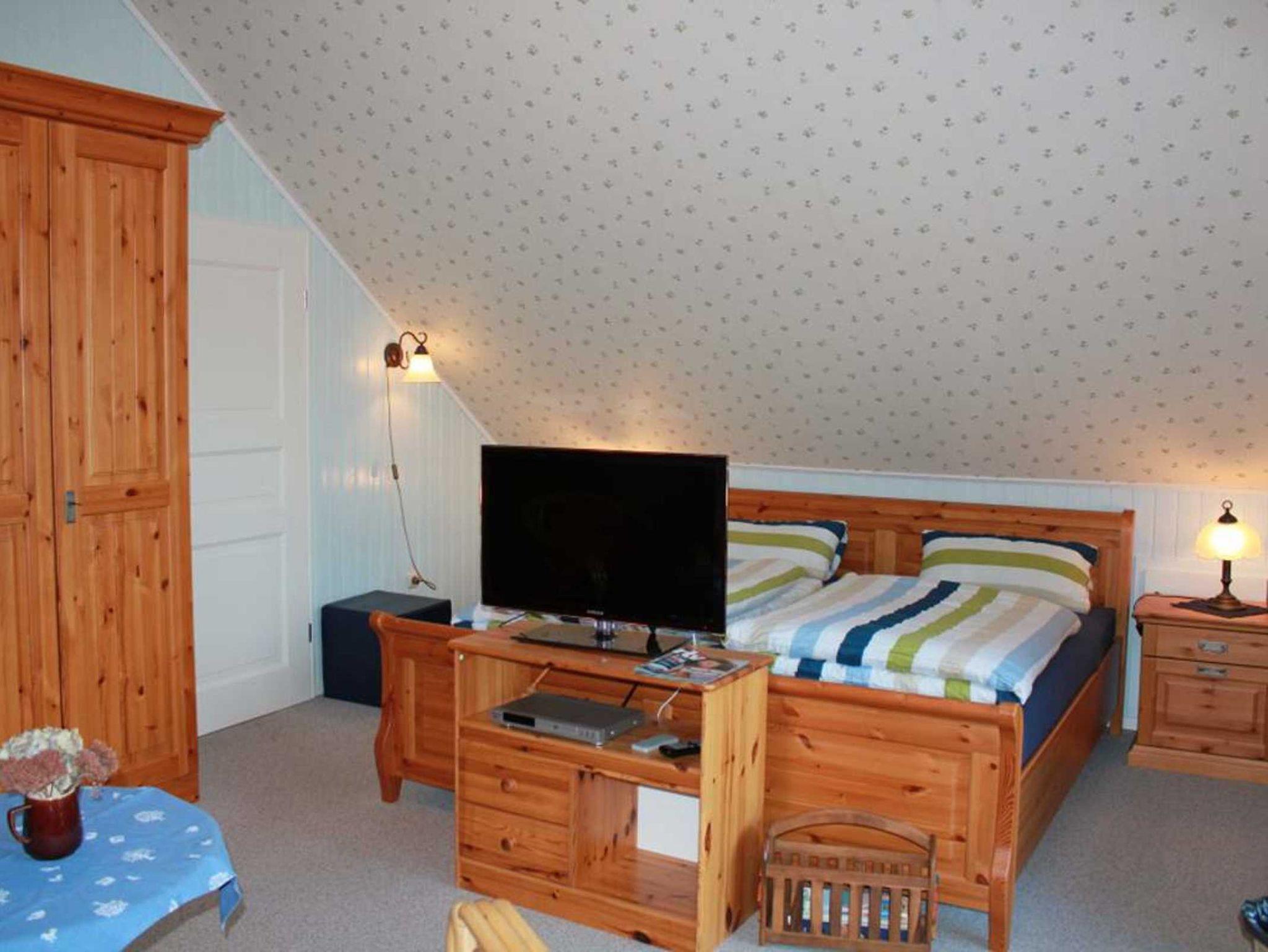 Es ist eine liebevoll gestaltete 3 Sterne Oberwohnung in familiärer Atmosphäre. Große Räume mit schönem Ambient Die 80 qm große Wohnung besteht aus vier Zimmern, Küche und Bad mit hochwertiger Ausstattung und bietet Platz für 1 bis 5 Personen, zusätzlich 1 Kinderbett. Haupt-Schlaffzimmer mit Doppelbett 2x2m.