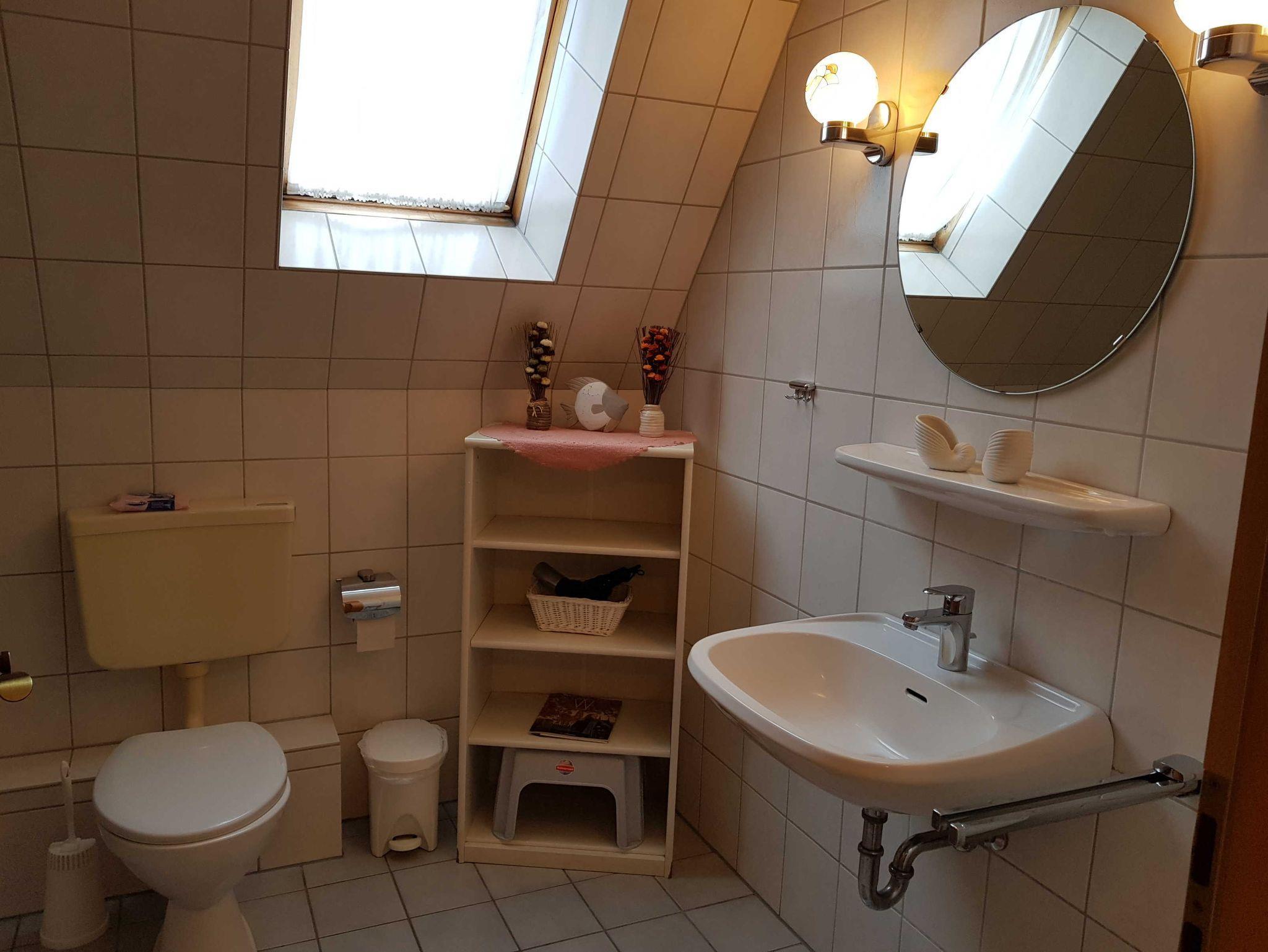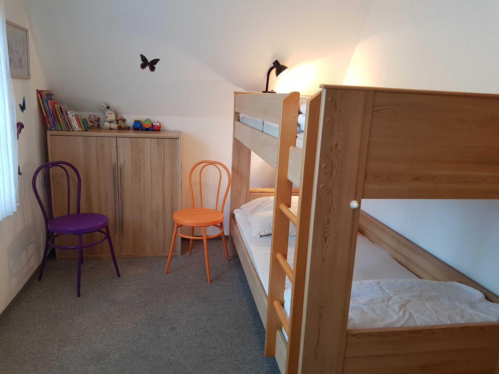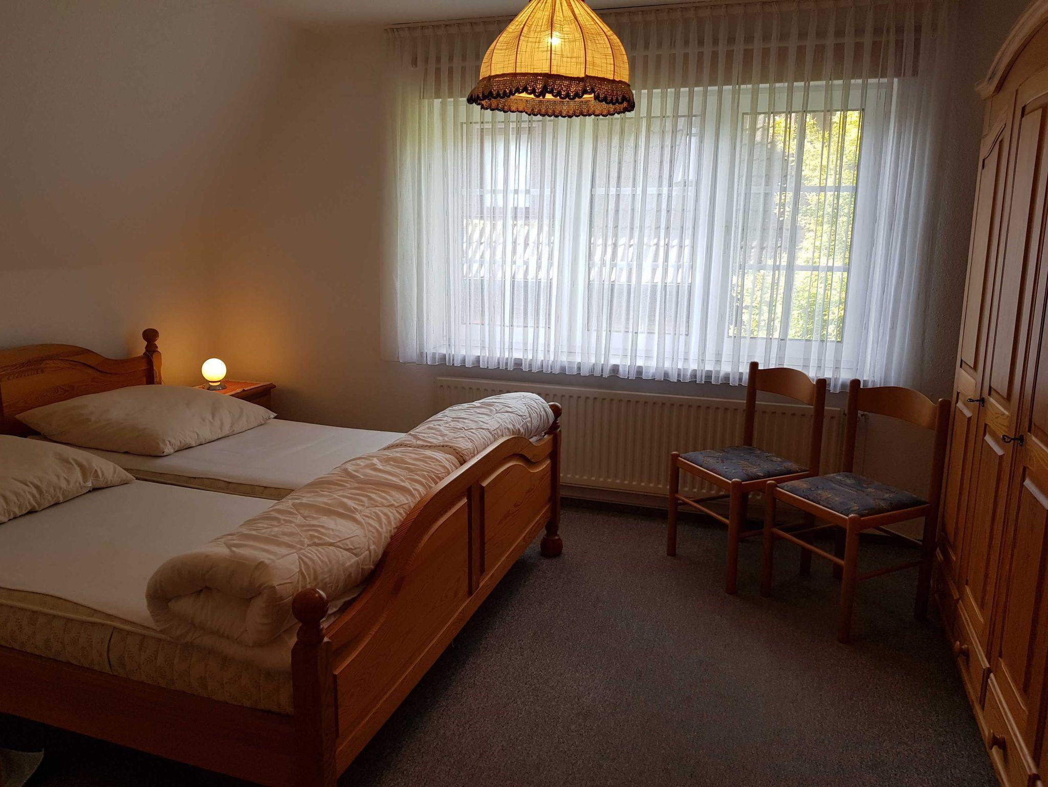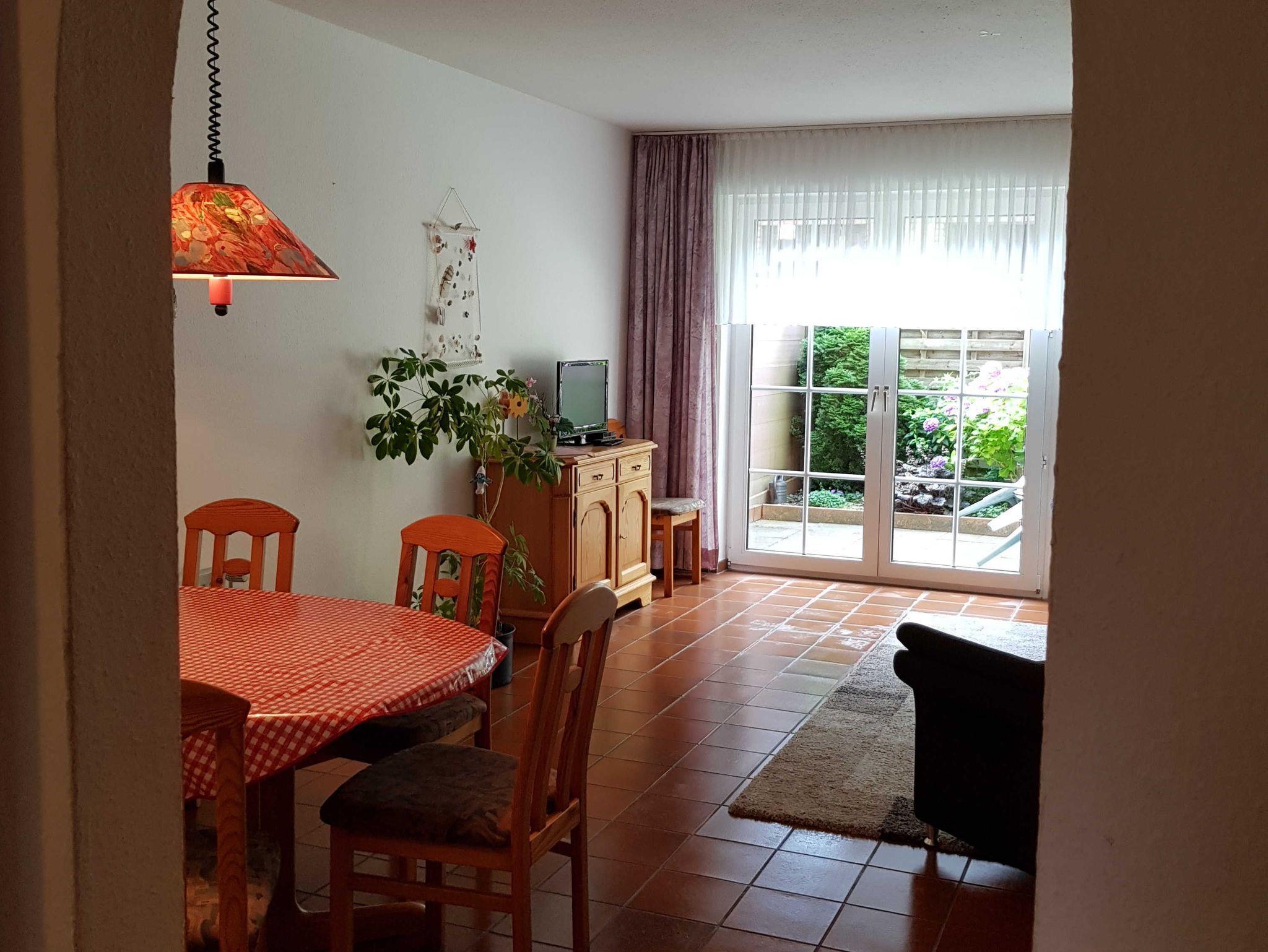 Das Ferienhaus ist das 3. Haus von 5 Reihenhäusern. 4 Häuser sind Ferienhäuser. Zum Haus gehört der 3. Parkplatz der über die Parallelstraße... Auf der Gast ... zu erreichen ist. Zum Haus gehört ein Kellerraum in dem Fahrräder untergebracht werden können. Im Keller befindet sich auch die Waschmaschine und der Wäschetrockner der von den Ferienhäusernutzern gemeinsam genutzten werden kann. Diese Geräte sind mit 1 Euro Münzen zu bedienen. Im Haus gibt es eine kleine vollausgestattete Küche, einen gemütlichen Ess- und Wohnbereich mit Fernseher und Radio- CD Spieler. Ein kleines Bücherregal das rege genutzt und getauscht werden kann. Auf der Terrasse sind Gartenmöbel. Im Abstellraum sind Sonnenschirm, Liegen und Auflagen, Kinderhochstuhl und Reinigungsgeräte zu finden. Ein kleiner Vorratsraum und ein Gäste WC sind ebenfalls im Erdgeschoss. Über eine Treppe gelangen Sie zu den Schlafzimmern. Ein Doppelzimmer mit geräumigen Schrank und ein Zimmer mit Etagenbett sowie Kinderbett sind dort zu finden. Es können jeweils 1 Klappbett oder ein Kinderbett zugestellt werden. Das Badezimmer mit Dusche, Waschbecken und WC sind ebenfalls oben. Hygiene- und Reinigungsartikel müssen selbst mitgebracht werden.