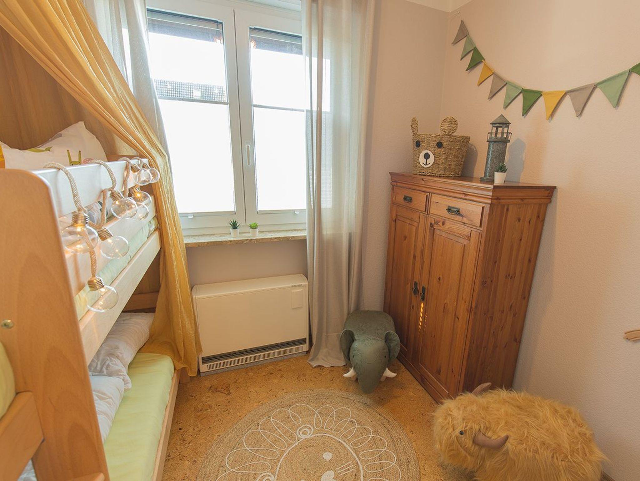 Moin Moin in unserer EG-Wohnung Fenja. Hier verbringen Sie ihren Urlaub strandnah und sehr ruhig in einer reinen Wohnstraße. Durch den großzügigen Flurbereich gelangen Sie ins Wohn/Esszimmer mit L-Küche und gemütlichem Ottomanen-Sofa mit Blick auf den wandhängenden Fernseher. Hier ist der Ausgang zur sichtgeschützten begrünten Terrasse mit Mobiliar und Steingrill. Hier genießen Sie die frische friesische Luft. Die Wohnung hat zwei Schlafräume - der erste ist ausgestattet mit Boxspringdoppelbett und großem Kleiderschrank, der zweite bietet ein Etagenbett. Auch hier ist noch genügend Platz zum Spielen. Das freundliche helle Duschbad hat einen geräumigen Waschplatz und einen ebenerdigen Duscheinstieg.