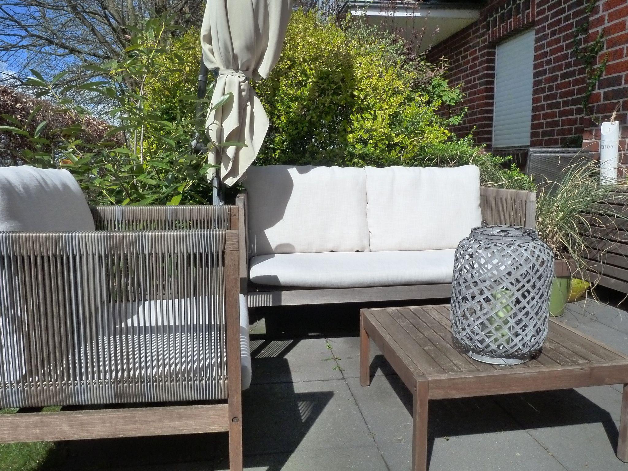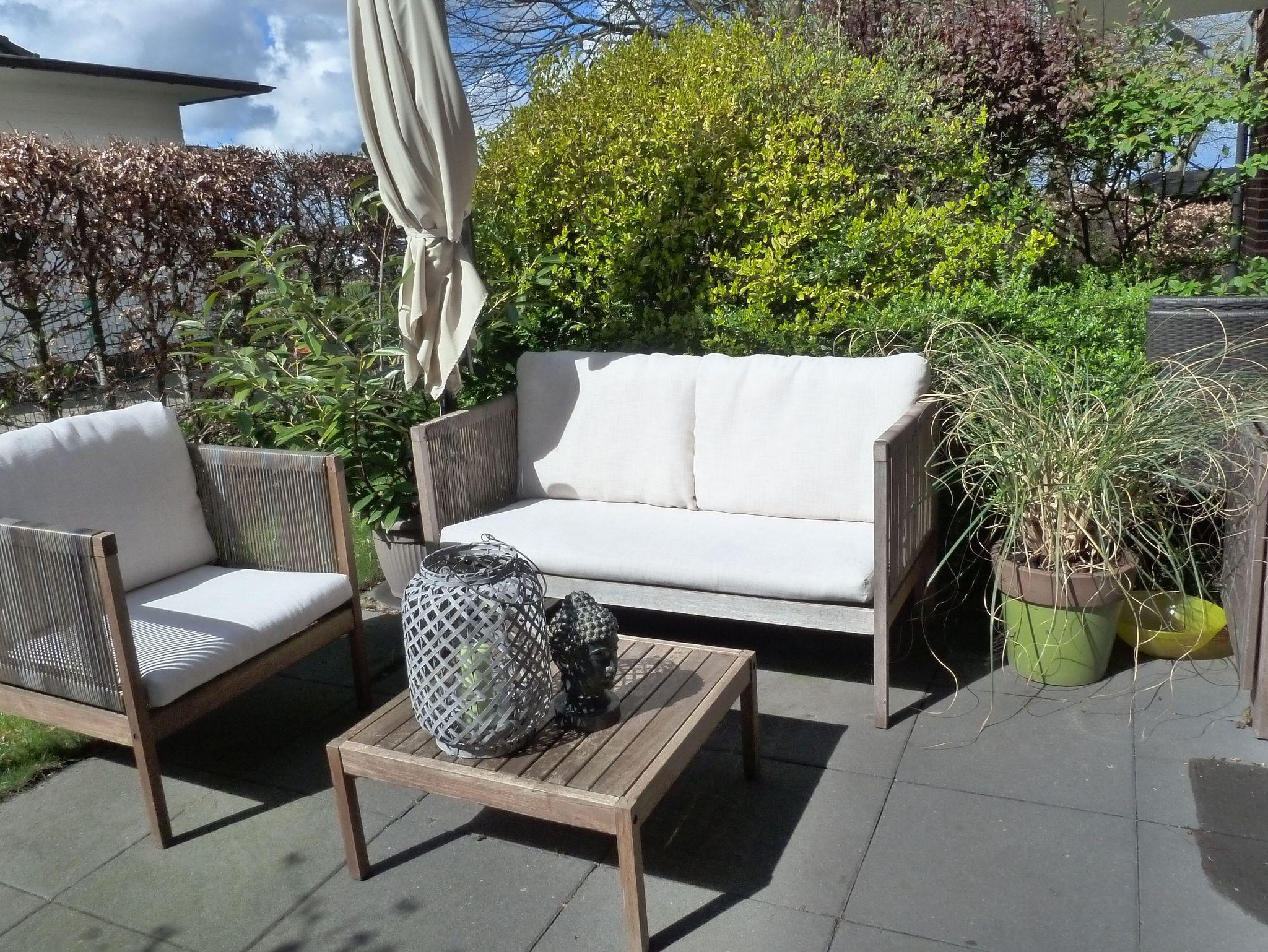schöne Terrasse mit Loungemöbeln und zusätzlicher Sitzgarnitur