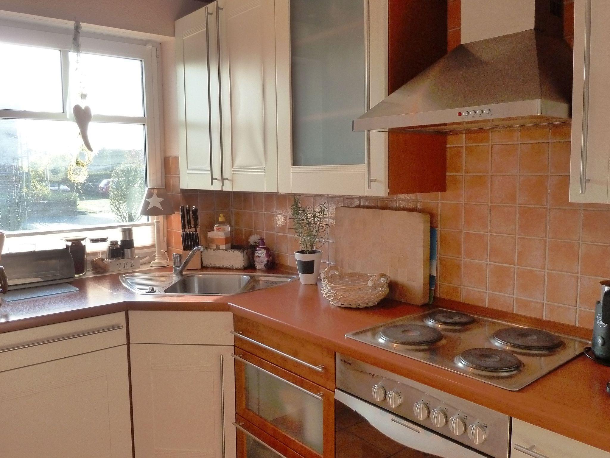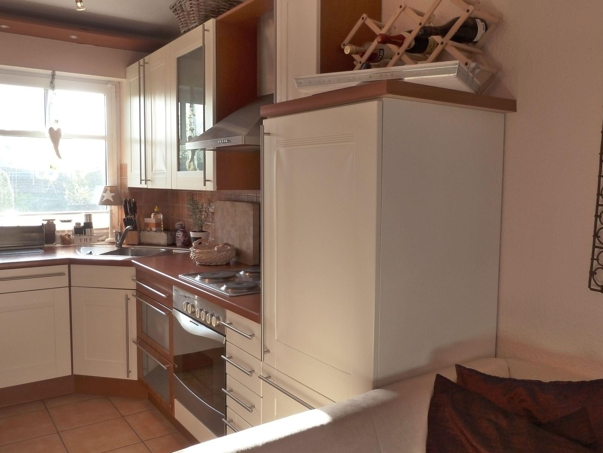 Küche mit Spülmaschine, Kühlschrank, Backofen, Ceran-Kochfeld, Toaster, Kaffeemaschine ...