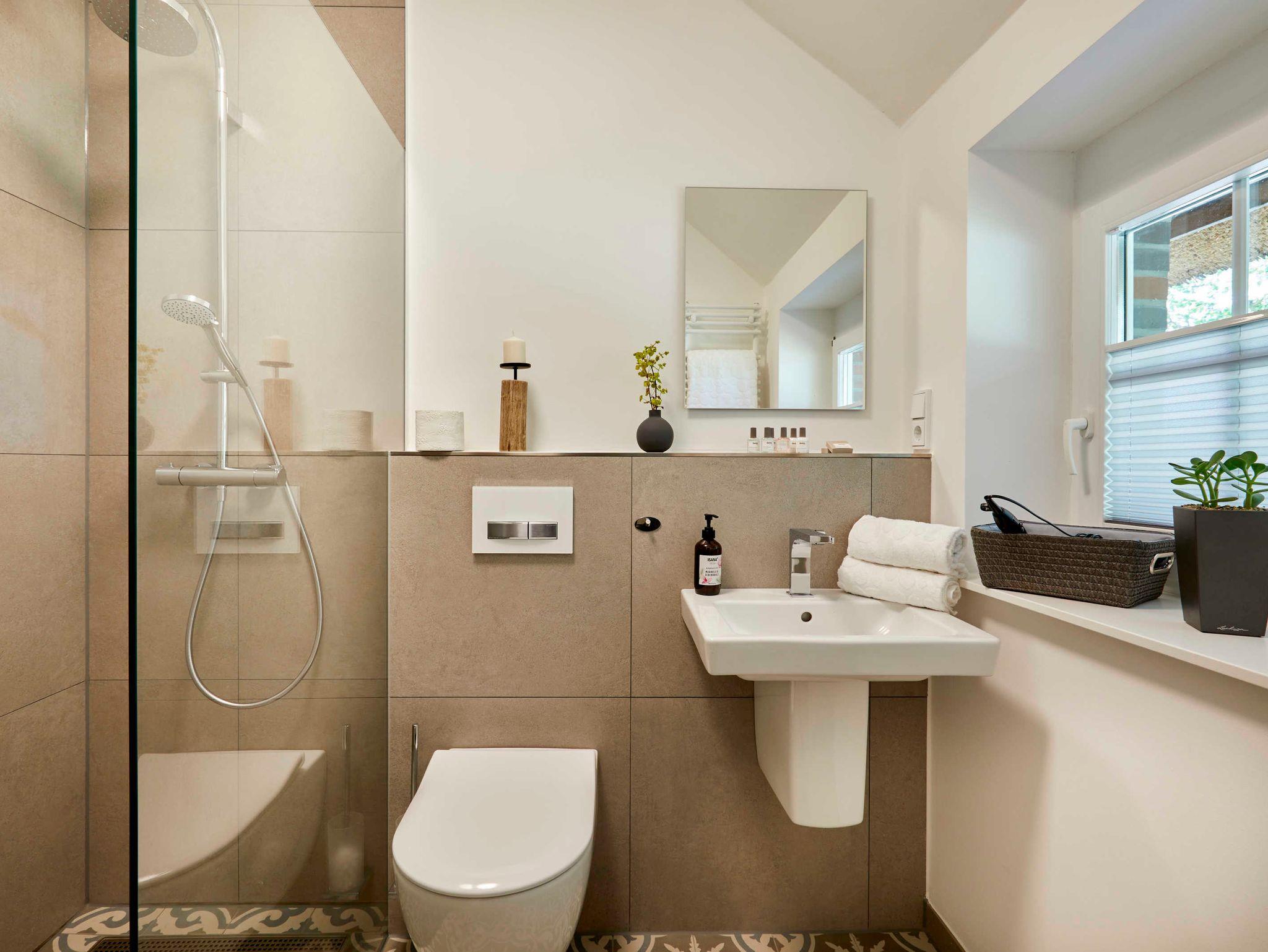 Elegante Bäder mit Bodentiefer Dusche und hochwertigen Materialien laden zum entspannen ein.