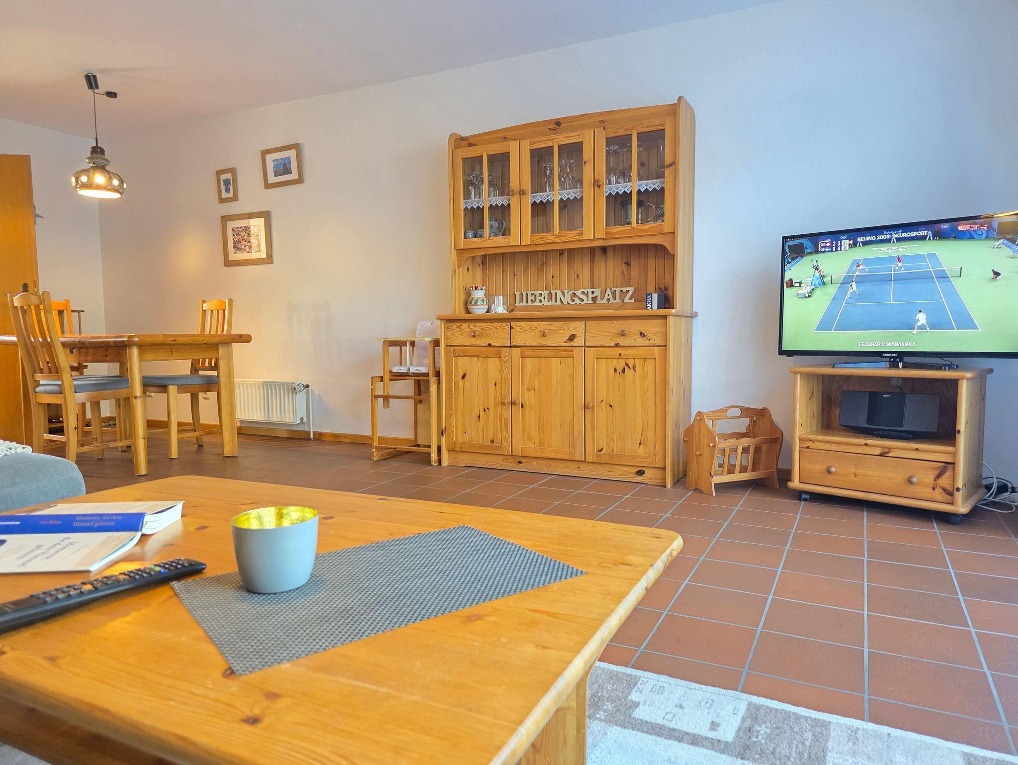 Eckgarnitur, Tisch, Schränke in skandinavischem Stil, Farb-TV mit Sat-Anlage, Stereo-Anlage, W-LAN, Diverses