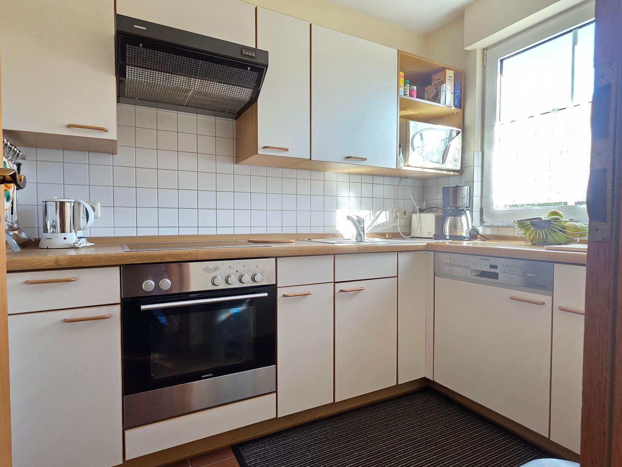 komplett eingerichtet, Spülmaschine, Elektroherd mit Ceranfeld und Backofen, Kühlschrank mit Gefrierfach, Kaffeemaschine, Toaster usw.