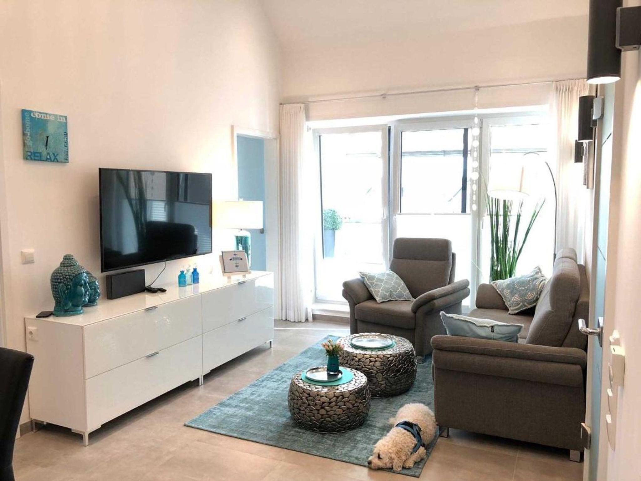 Die Penthouse Wohnung Boje 7.8 ist barrierefrei zu erreichen und verfügt über eine hochwertige Ausstattung. Das Wohn-Esszimmer ist gemütlich und und hell eingerichtet. Die moderne Küche lässt keine Wünsche übrig. Das Schlafzimmer hat ein Boxspringbett, das Gästezimmer verfügt über ein Schlafsofa. Das Badezimmer ist geräumig und hat eine bodentiefe Dusche. Auf dem Südbalkon können Sie entspannen und die Seele baumeln lassen.