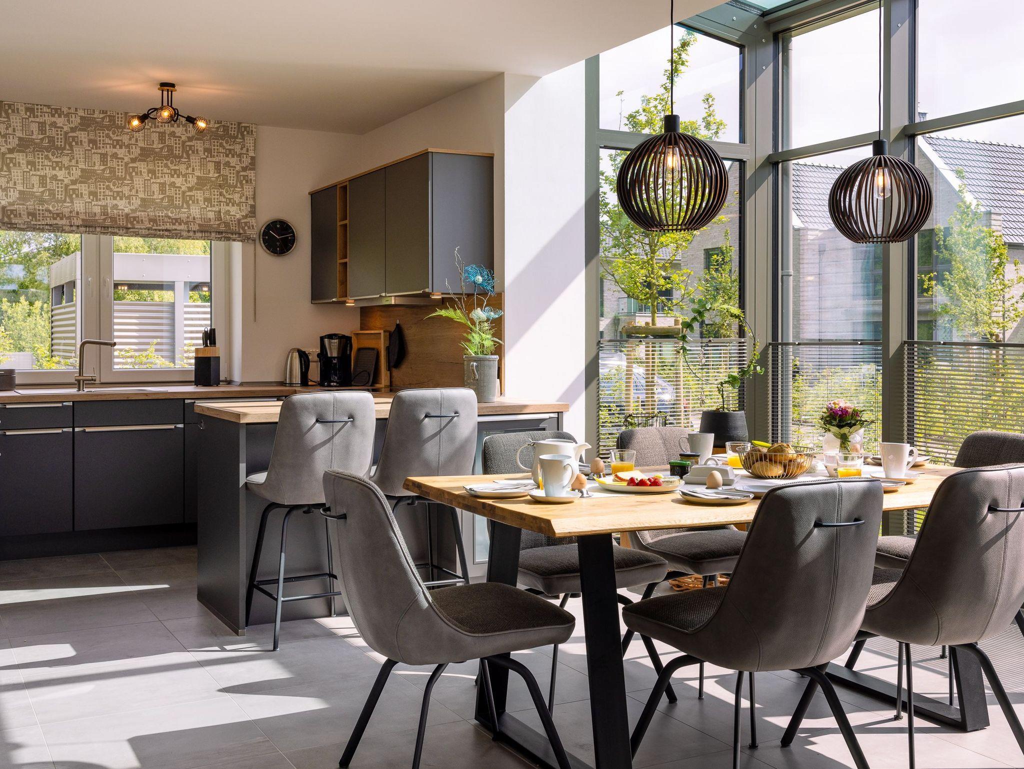 Ein Highlight dieses Ferienhauses ist zweifellos der atemberaubende Ausblick, den Sie von verschiedenen Räumen genießen können. Der helle Wohn- und Essbereich wird im Erdgeschoss durch einen Wintergarten ergänzt, der für eine lichtdurchflutete Atmosphäre sorgt und Ihnen das Gefühl gibt, mitten in der Natur zu sein.